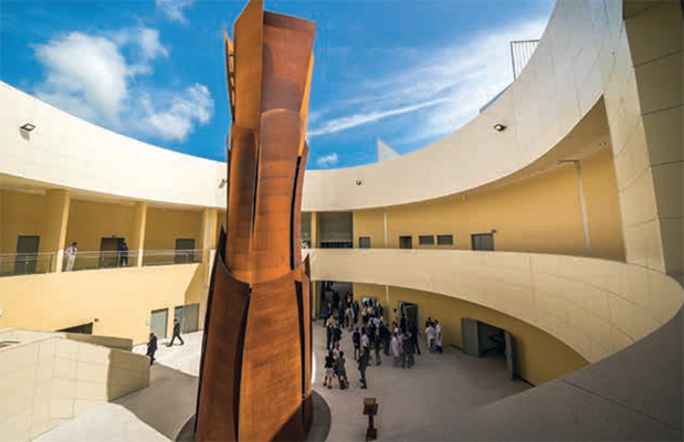 ⇒ un immense espace ouvert au centre du musée, juste habité d’une immense sculpture contemporaine censée symboliser le «poto mitan», ce qui en créole signifie «poteau du milieu». Or, la locution «poto mitan» est radicalement attachée à la femme en société créole pour désigner la monoparentalité des familles et l’esseulement de la mère dans la gestion familiale. Cette sculpture ne parle pas au néophyte de l’histoire de l’esclavage, sans informations qui permettraient de comprendre comment la société de plantation a bouleversé la structure familiale autant pour la femme que pour l’homme, du reste.