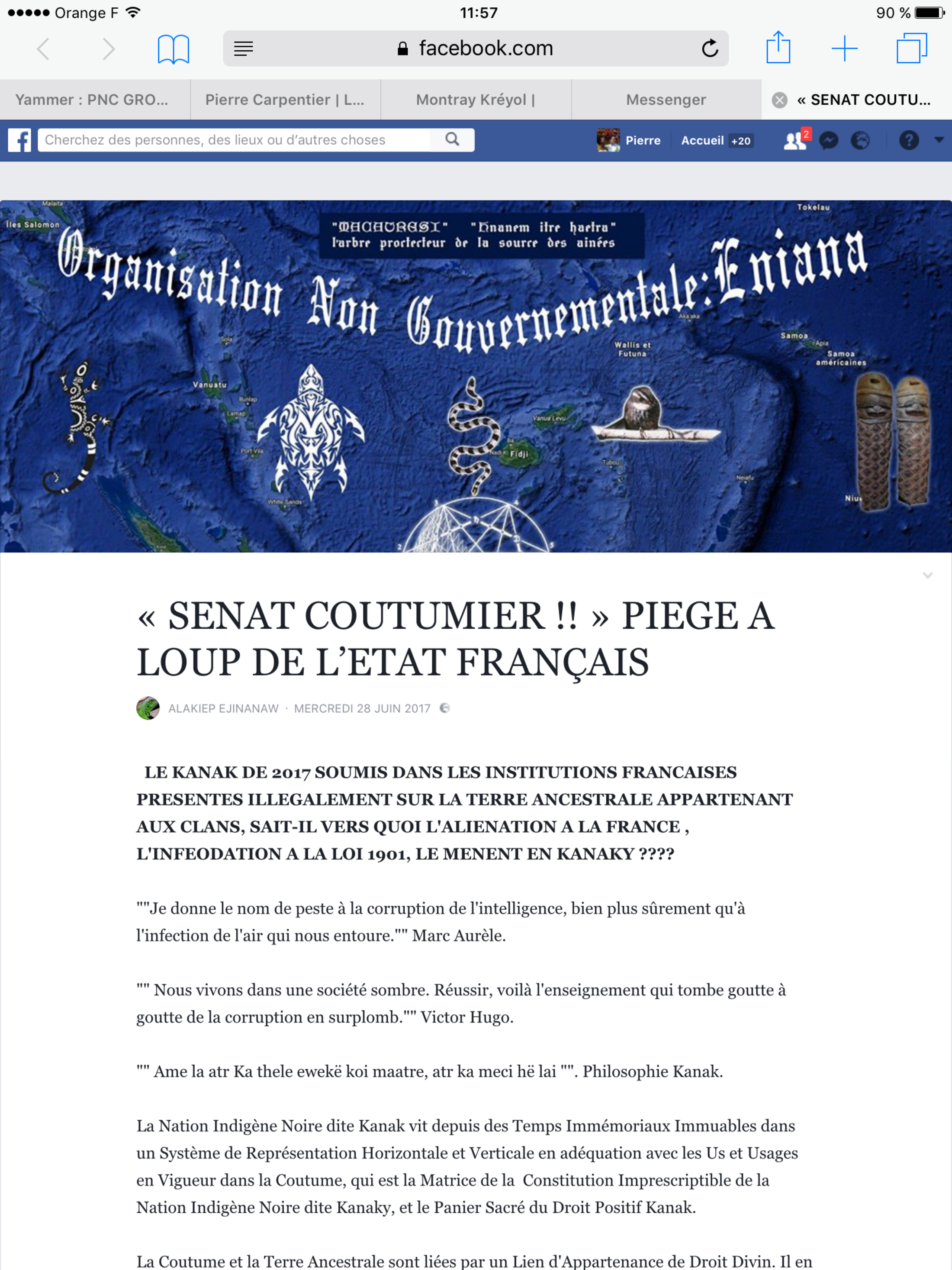 L' ONG Think-Tank Kanak ENIANA augmente d'arguments massue sa Task-Force de libération à mesure que le référendum d'achèvement de la décolonisation française se prėcise (dès 2018). Un Clash civilisationnel où le peuple Kanak, insoumi et libre de toute lėgitimité, fracasse la légitimitė dominante de la puissance administrante pan-océanique française. Et les sénateurs coutumiers sont ici avertis.