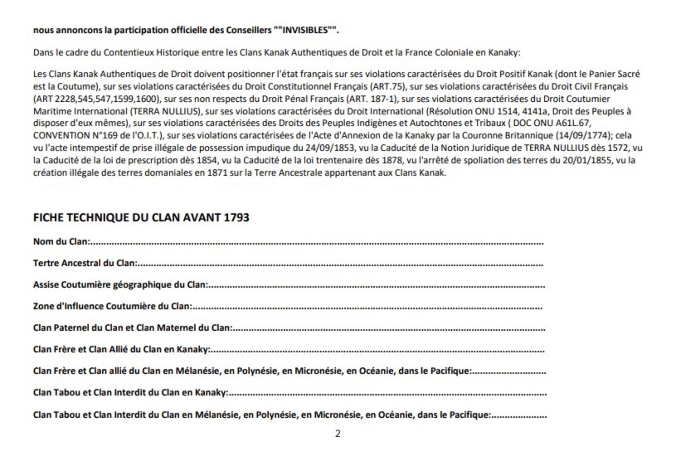 Fiches techniques des Clans du Kanak Think Tank ENIANA