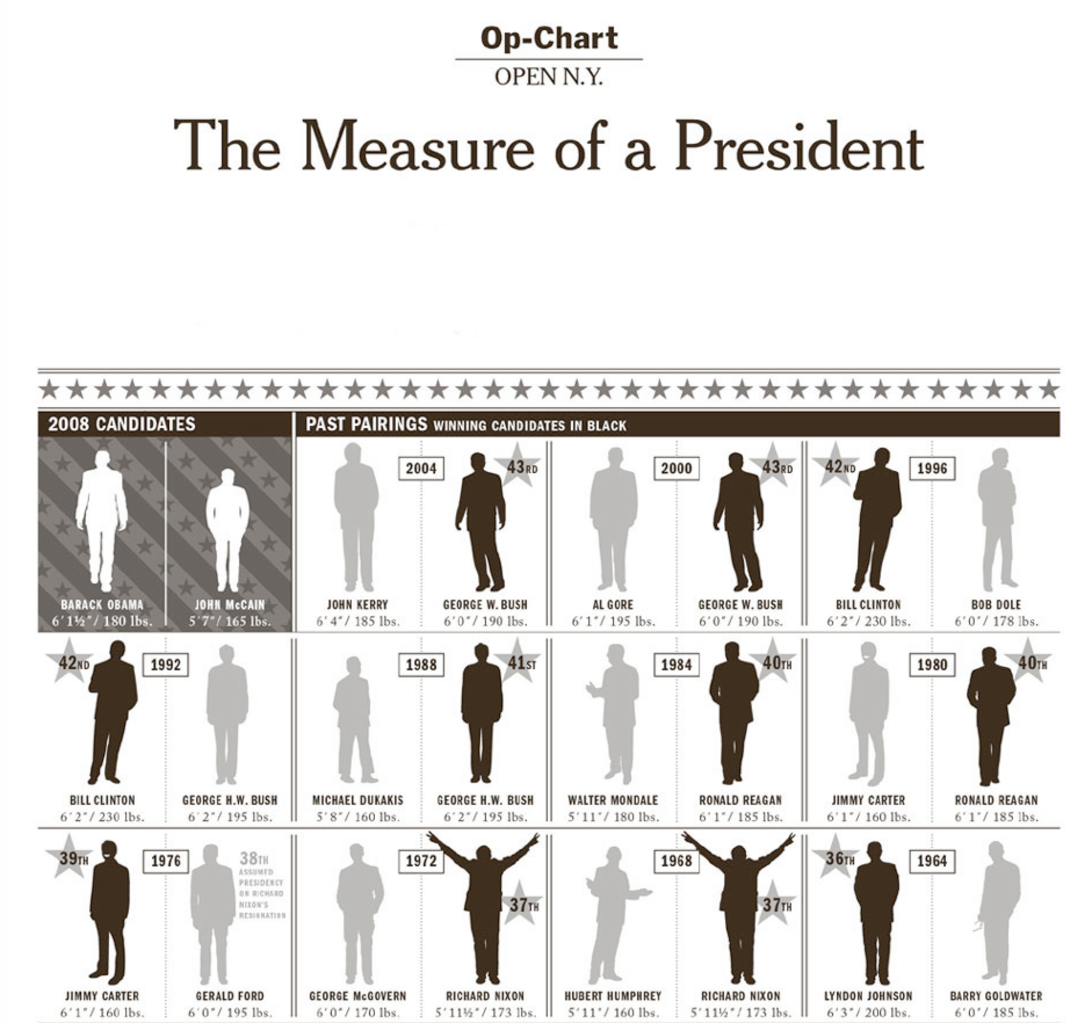Les Américains adorent les statistiques, en matière de sport comme de politique. Le New York Times s'est donc penché sur les caractéristiques physiques des candidats à la Maison-Blanche au cours de l'Histoire.