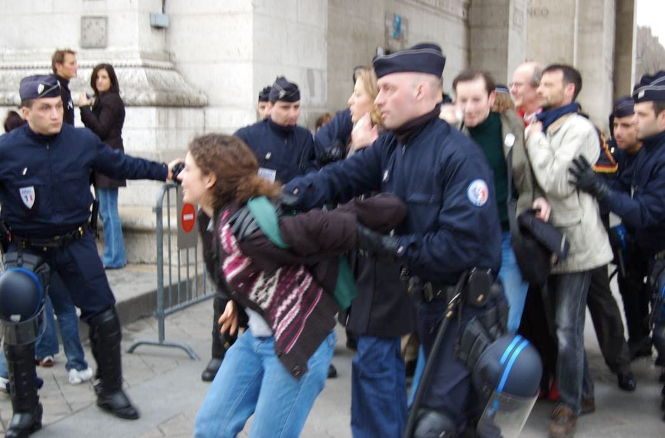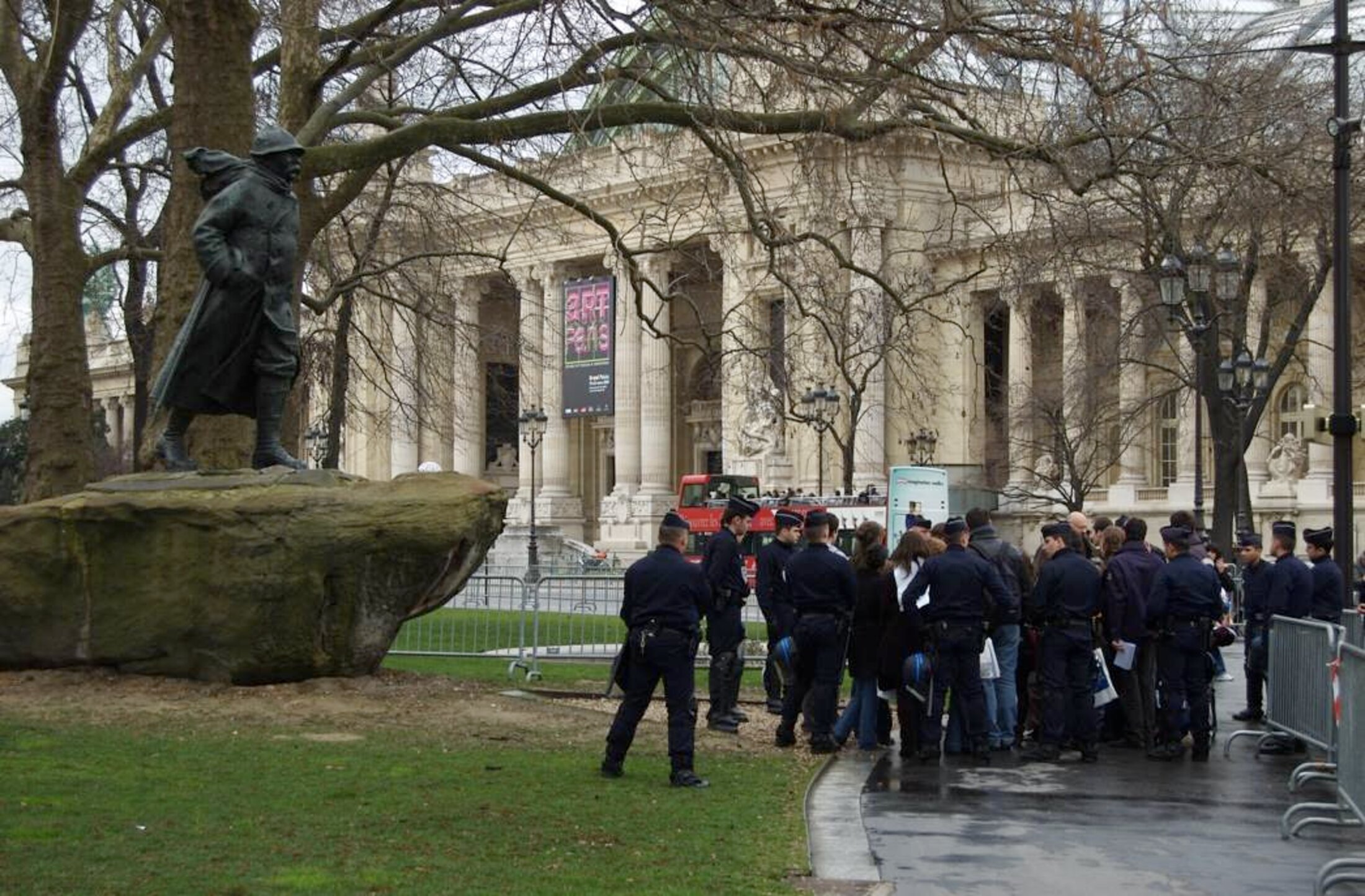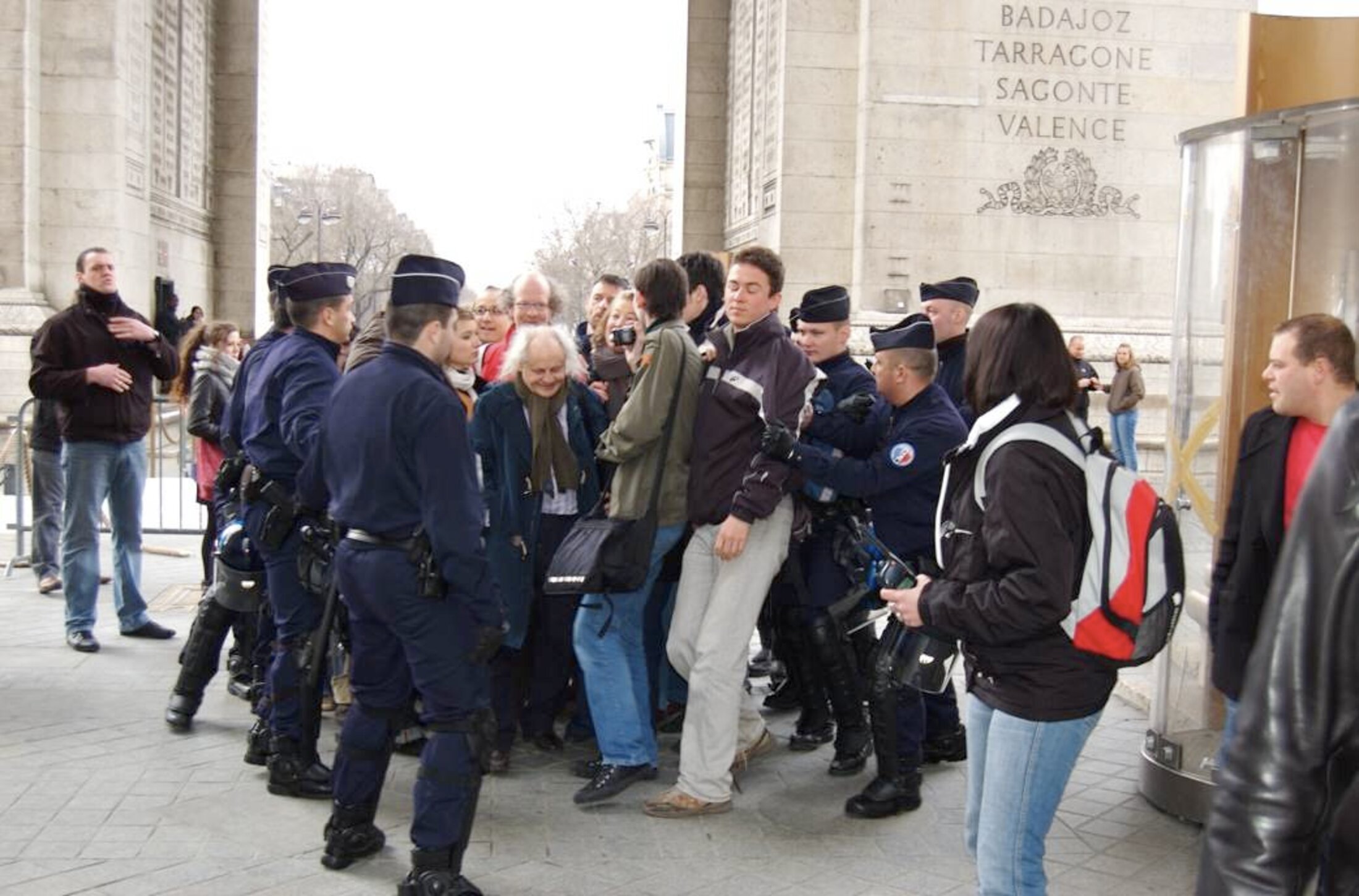 Avertis grâce à l'excellent site "Sorbonneengreve", des policiers étaient également venus en nombre. En dépit de nos précisions et profitant d'une supériorité numérique tout comme du caractère explicitement pacifique de nos intentions, ils nous ont poussés hors du plateau et dans le souterrain jusqu'aux Champs-Elysées, assurant une singulière séance de travaux (très) dirigés d'instruction civique et suscitant la curiosité des nombreux touristes présents. La présentation liminaire de "Paris et sa population au début du XXe siècle" a ainsi été abrégée. Les nombreux policiers présents ont ensuite pu profiter d'une courte conférence "Histoire et mémoire du soldat inconnu", tout en regrettant sans doute avec nous qu'elle n'ait pas pu se tenir à proximité de la flamme, ce qui aurait été bien plus pertinent.