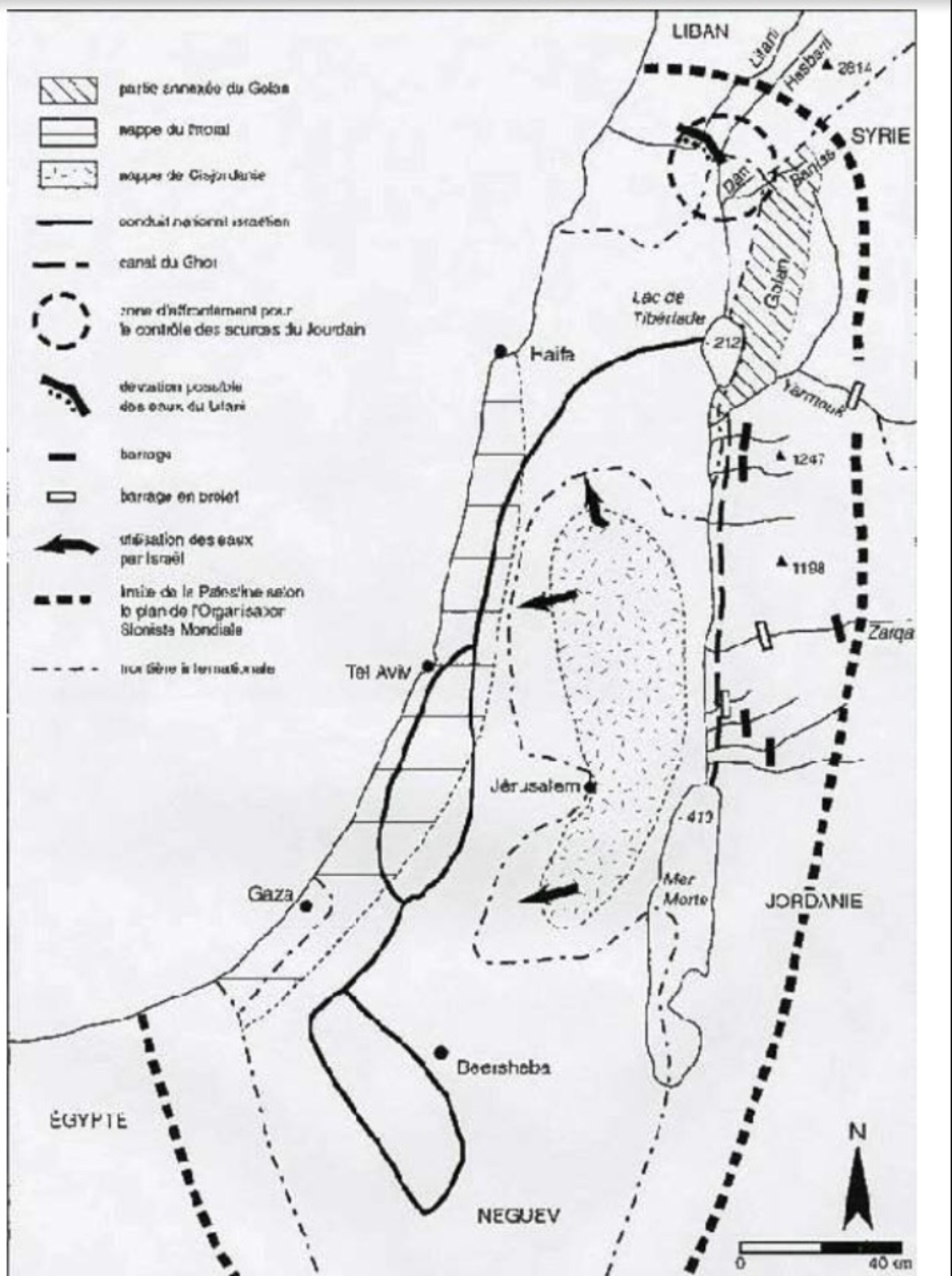 - L'eau du Jourdain est détournée vers Israël par "le conduit national israélien" à partir du lac de Tibériade par la société Mékorot.