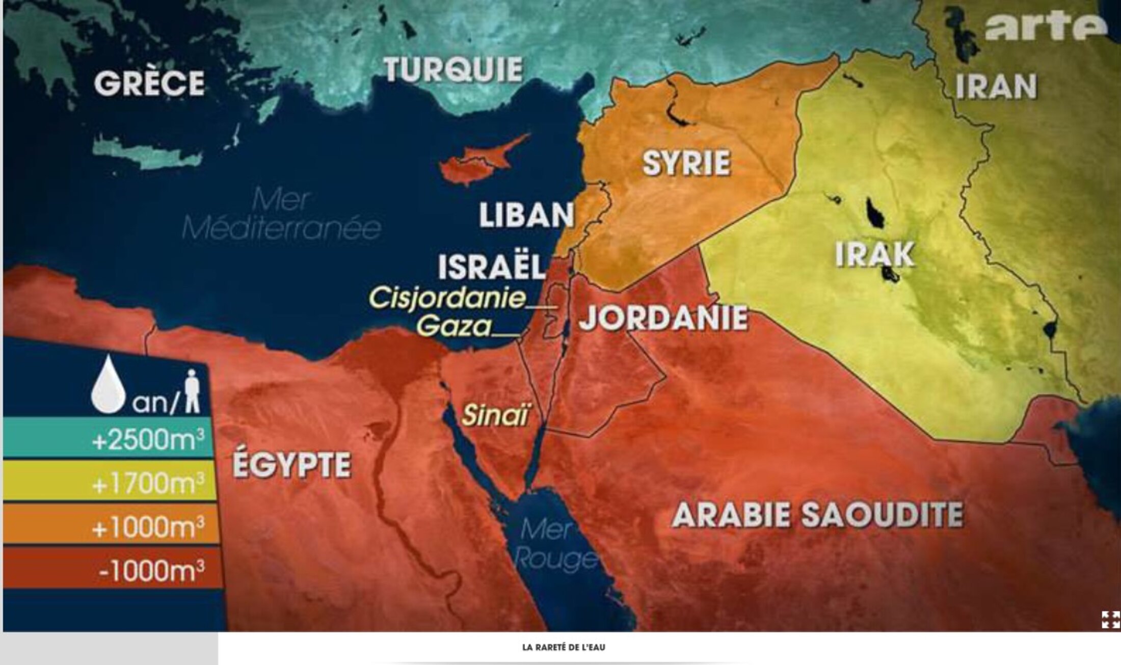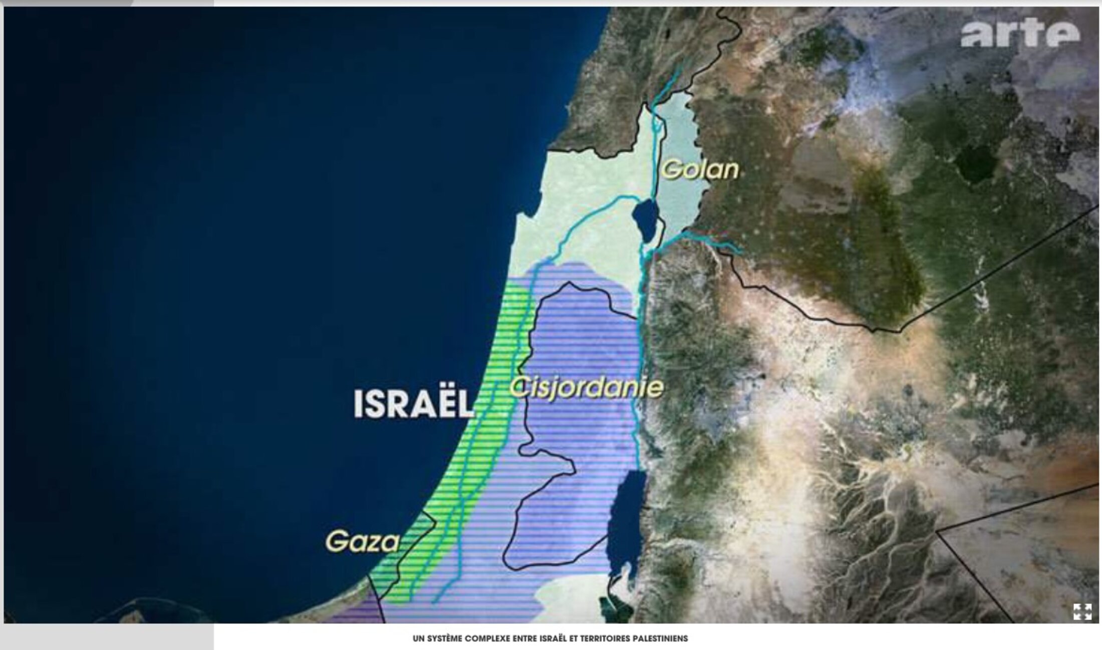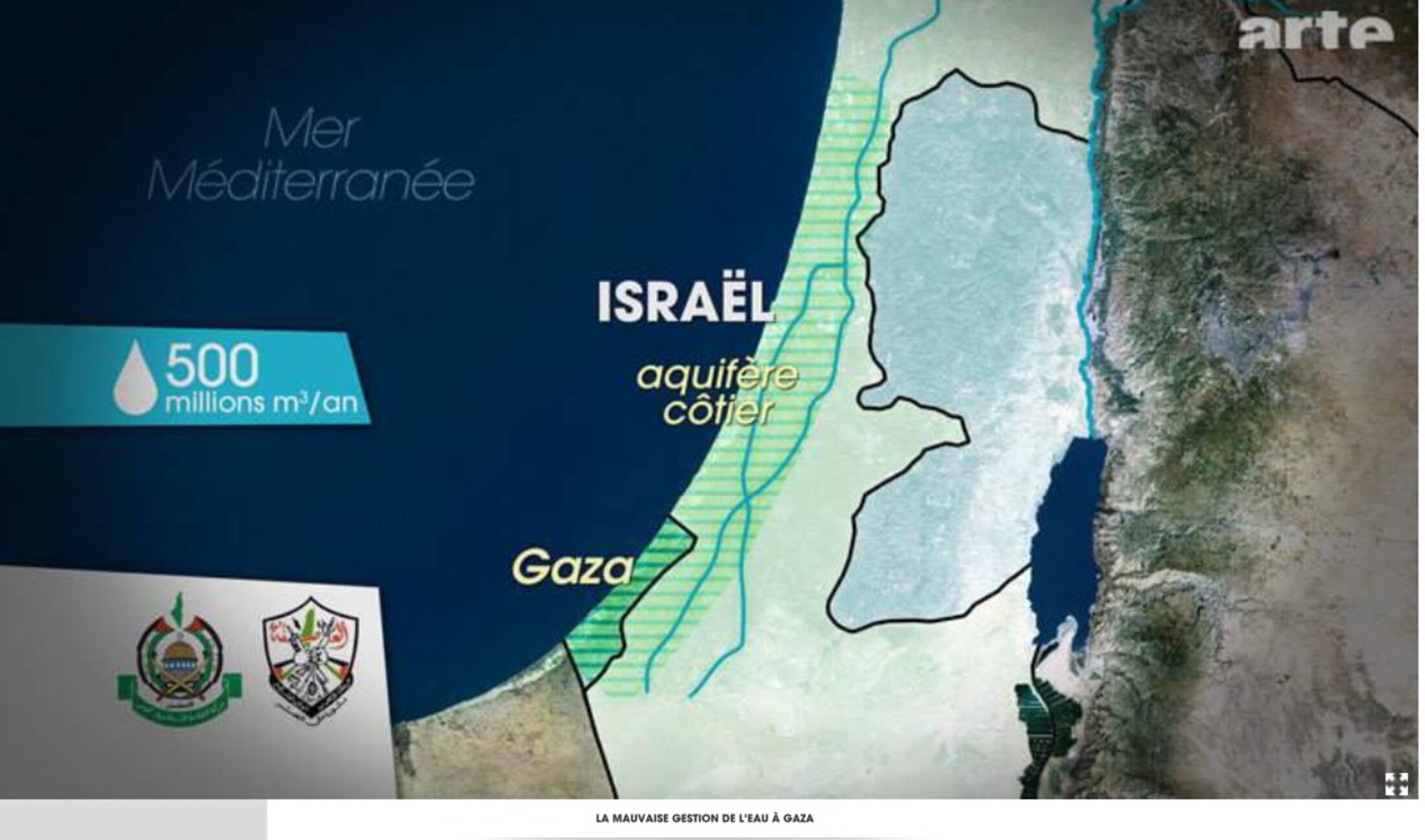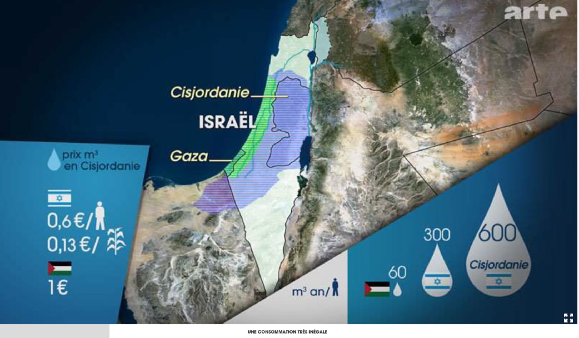 Israël- Palestine : une guerre pour l'eau ? Le dessous des cartes, émission diffusée pour la première fois en 2010. Émission désespérément équilibriste essayant, entre autres ver-tus, de présenter le rapt militaire de l'eau comme une "guerre" pour l'eau, comme si les protagonistes se confrontaient en lutte loyale, alors qu'on a affaire à l'implacable dépossession d'un peuple-cible à merci. E'M.C.