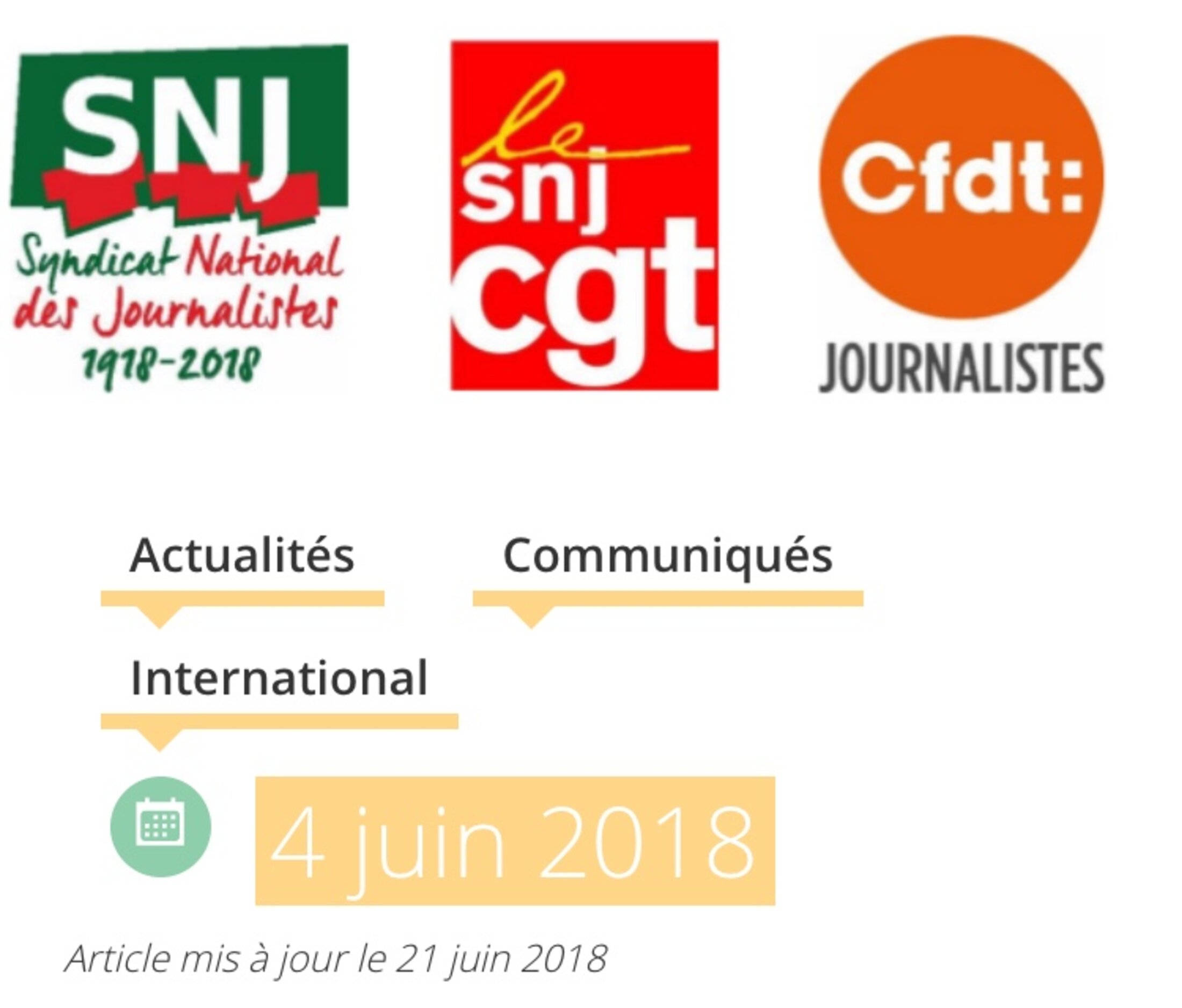 SNJ, SNJ-CGT, CFDT-Journalistes.