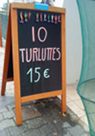 Humeur badine ce matin et le panneau que je croise sur le trottoir conforte mon sourire: « 10 turluttes pour 15 € ».