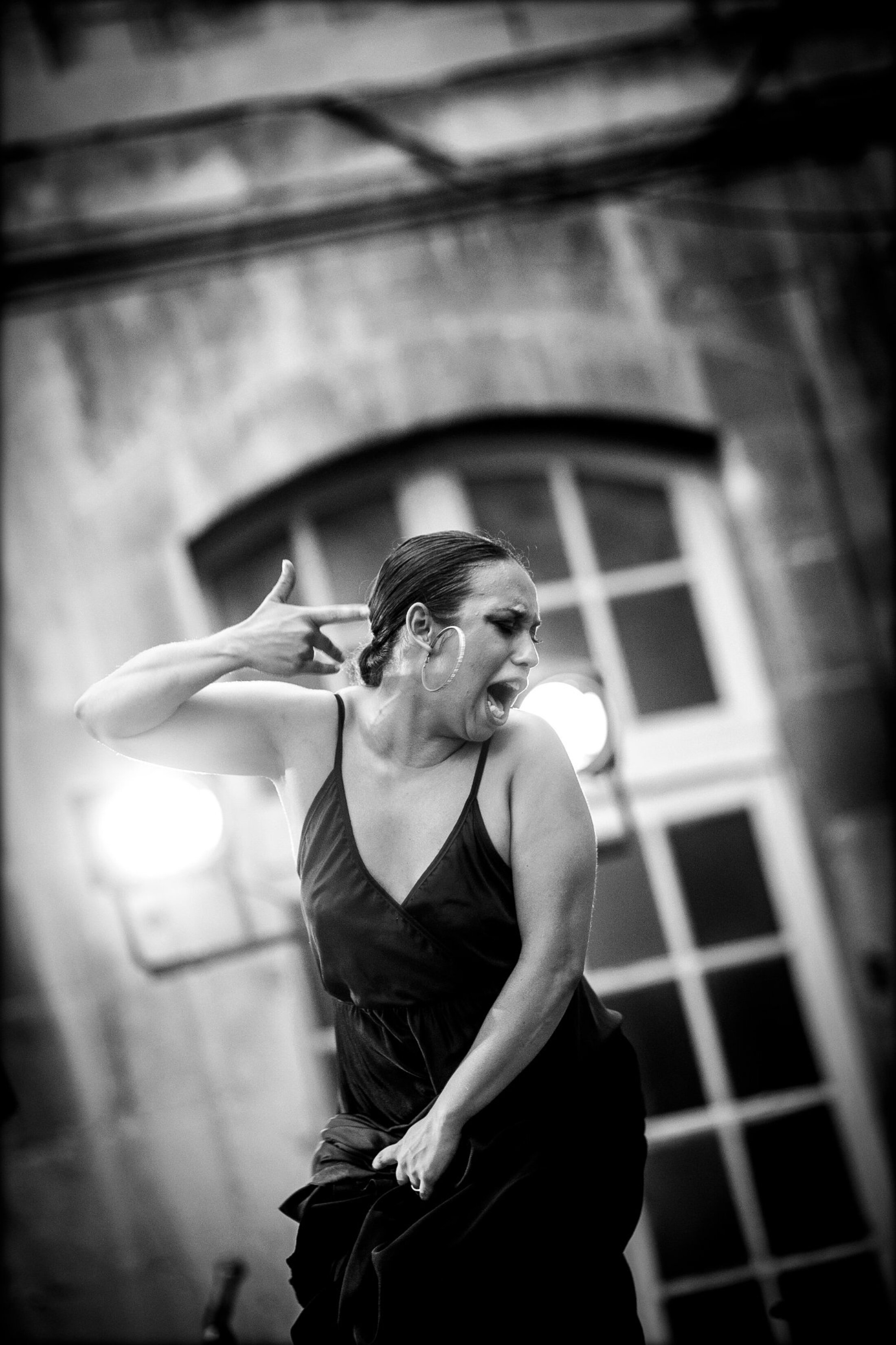 Une image en hommage à l'ami disparu René Robert, Maria Terremoto, fille de et fidèle à l'éruptif caractère de la famille. Acte II des Suds, à Arles, Cour de l’Archevêché, le 12 juillet.
