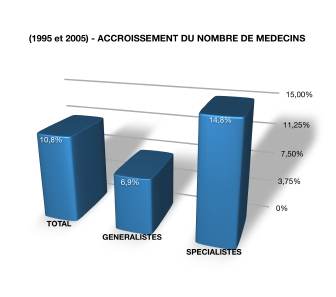Entre 1995 et 2005 le nombre total de médecin a cru de 10,8 % mais: