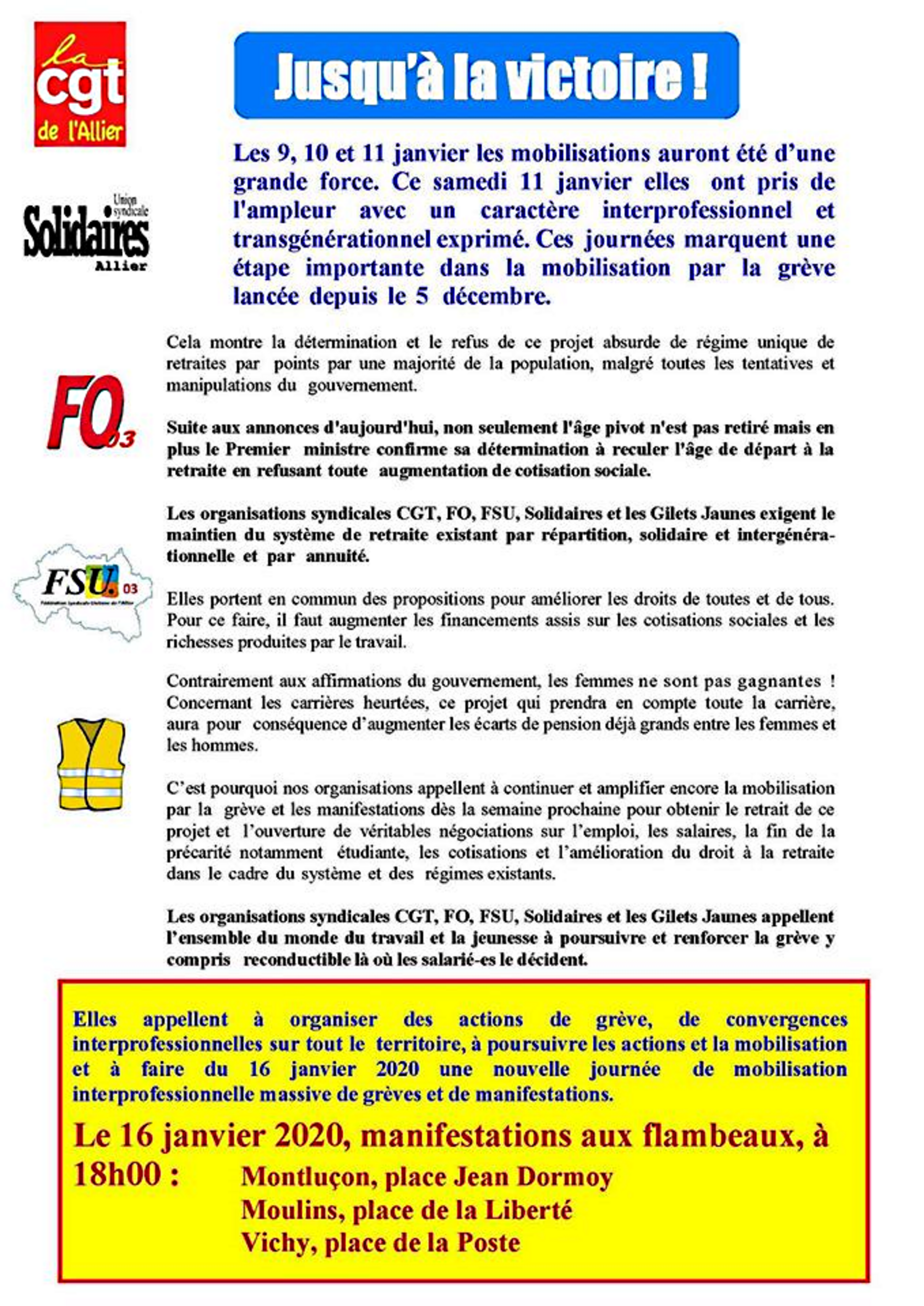 Communiqué Solidires Allier soutien à Laurent IndrusiakDemain, jeudi 16 janvier : manifestations aux flambeaux à 18h, sur les villes du département :