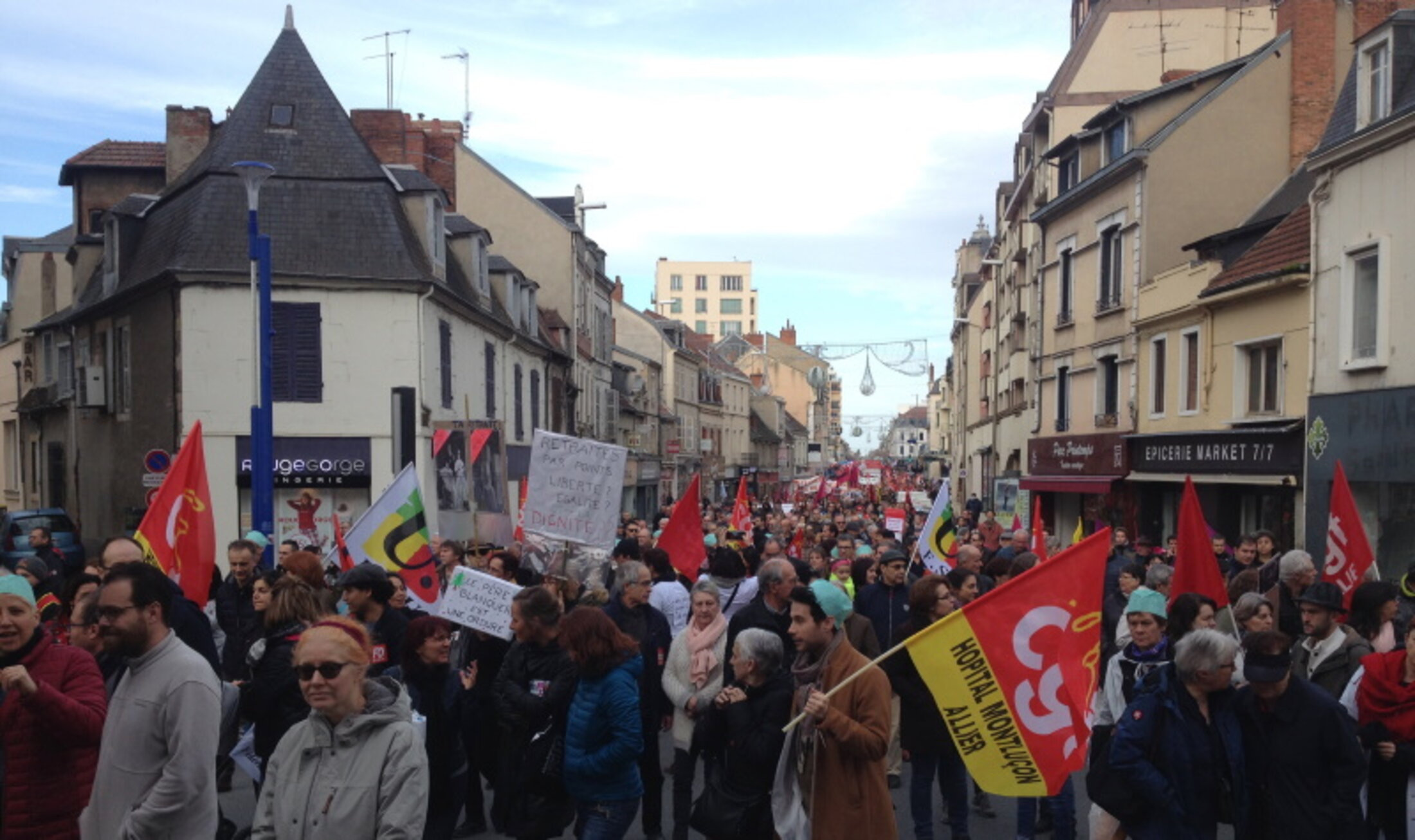 3 000 manifestants à Montluçon, 2 000 à Moulins et 2 000 à Vichy. Des cortèges dynamiques et beaucoup de professions représentées. Le public et le privé main dans la main avec la même revendication : Retrait du projet de réforme de retraites.
