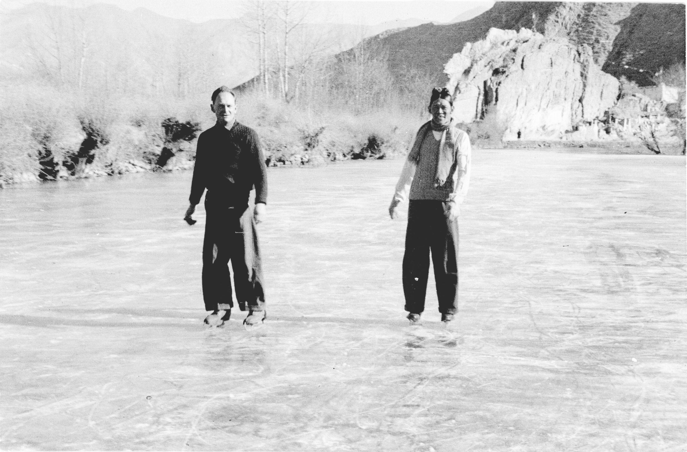 Heinrich Harrer beim Eislaufen in Lhasa, 1940er Jahre. (Bild: Völkerkundemuseum der Universität Zürich)