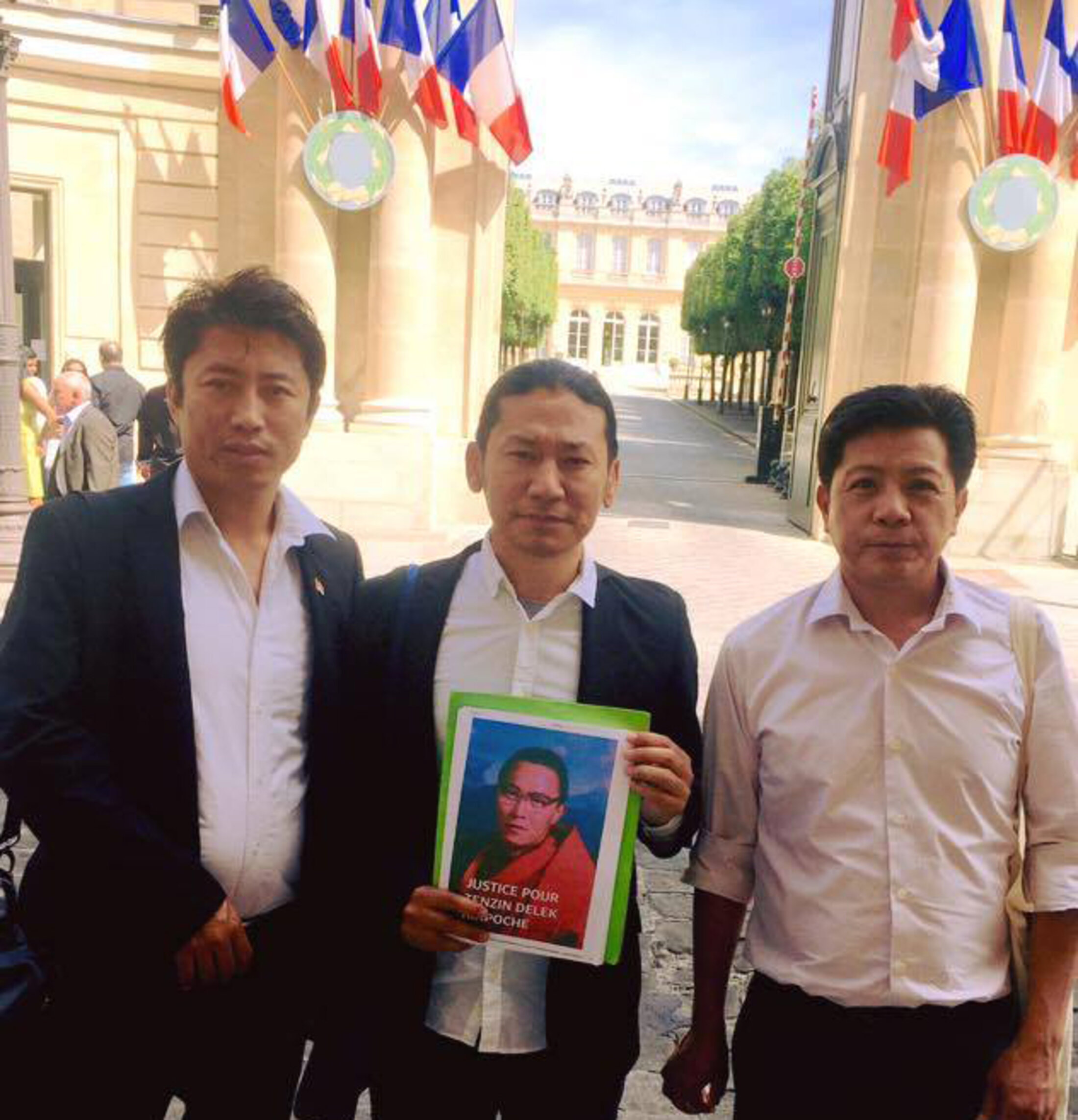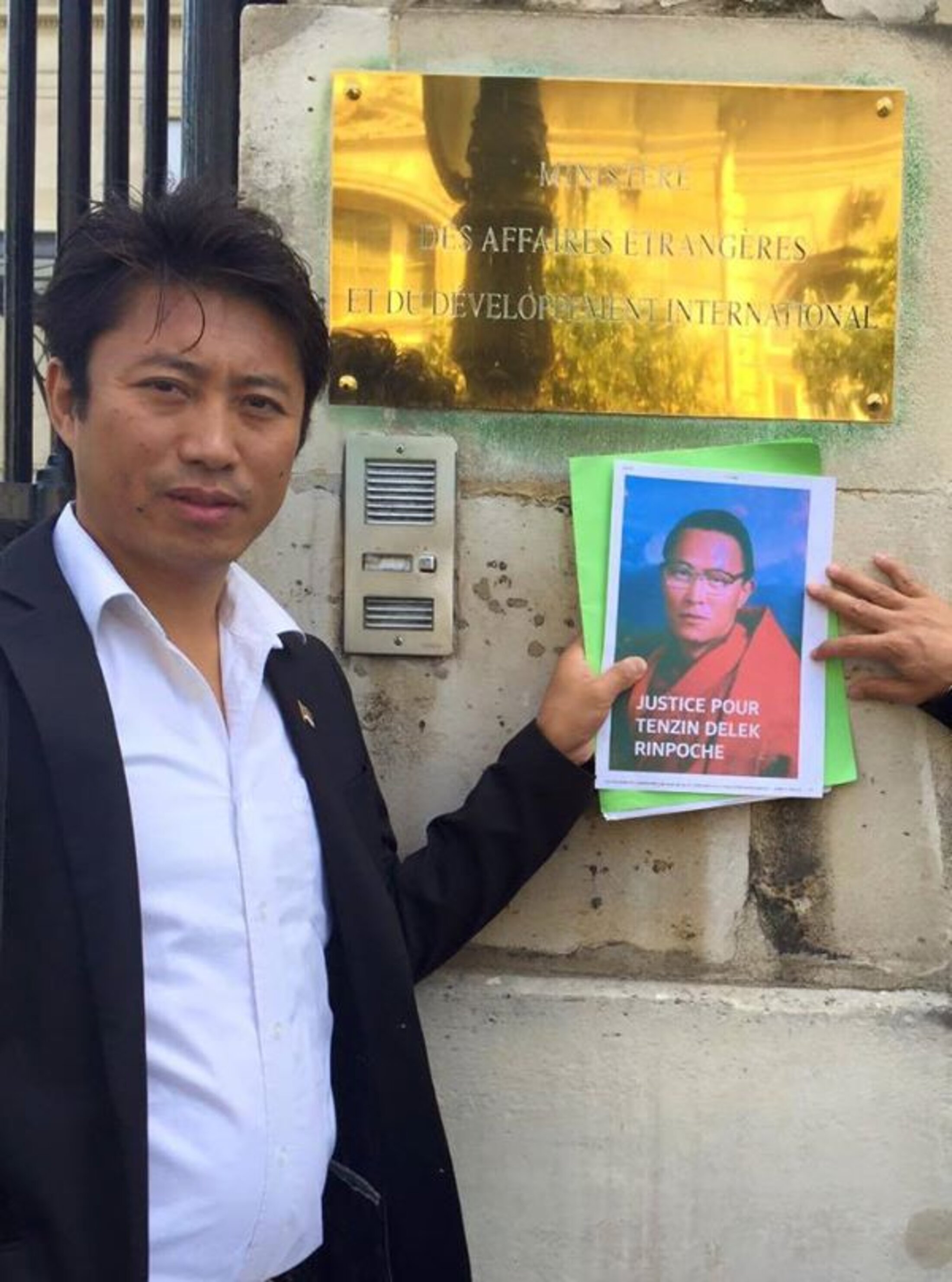 " Plusieurs défenseurs des Droits des Tibétains de l’Association Étudiants pour un TIBET Libre (SFT), accompagnés de Lobsang la, un membre de la famille de Tenzin Delek Rinpoche, ainsi que Dolkar Lhamo n'ont pu rencontrer, hier, 22 juillet 2015, Laurent Fabius, Ministre français des Affaires étrangères, mais la direction d'Asie et Océanie afin de leur demander que l’'État français puisse s’enquérir, auprès du Gouvernement chinois, des circonstances de la mort soudaine de Tenzin Delek Rinpoche, dans une prison chinoise et de la disparition de la sœur de Rinpoche ainsi que de la fille de celle-ci, Nima Lhamo. "