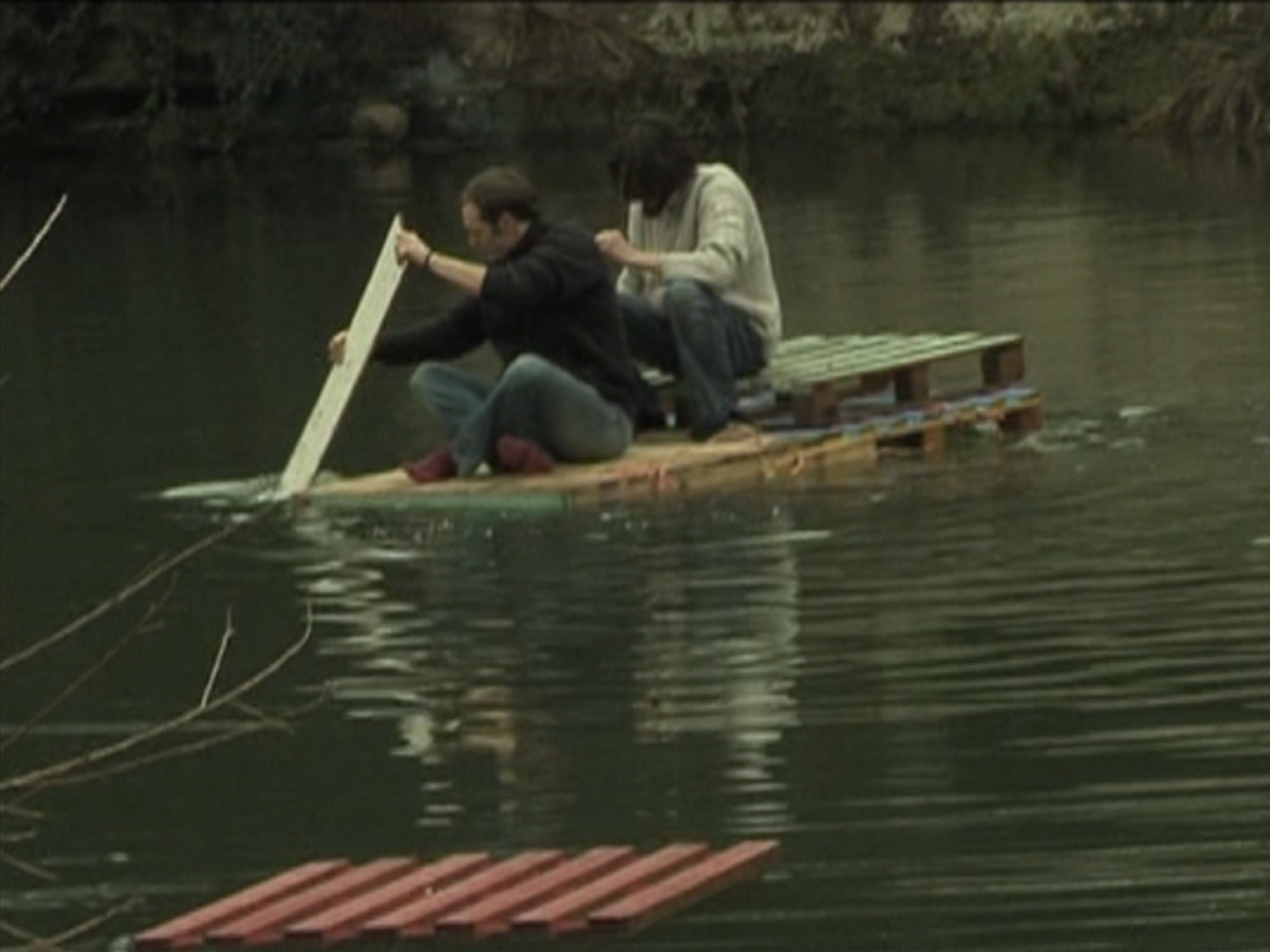Les adultes, à la fin de leur journée, s’assoient sur la berge et s’observe travailler encore sur l’autre rive.