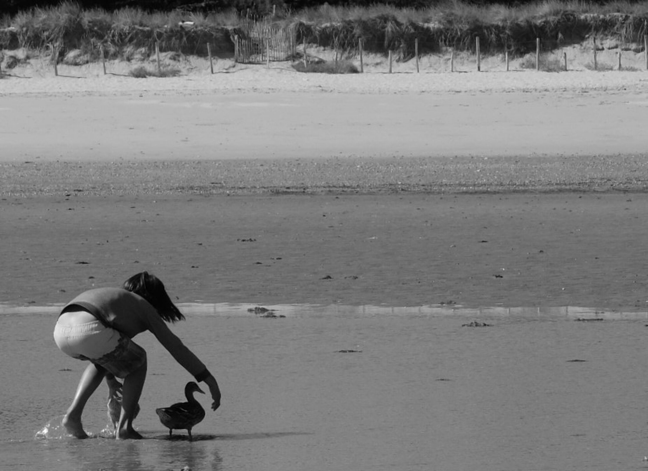 «Nous, les enfants, nous entrons dans l’eau en riant. Nous nous éclaboussons, nous nous faisons tomber. Entrer dans l’eau n’est pas un geste décisif pour nous. L’eau n’a pas de seuil. Les grandes personnes prennent la chose tout autrement. Il suffit d’observer leurs hésitations, leurs temps d’arrêt, leurs manies : se passer de l’eau sur la nuque, faire des ronds avec leurs mains, comme si elles cherchaient à cerner leur degré de frilosité, ou bien à s’interdire par ces cercles répétés de retourner sur la rive. »