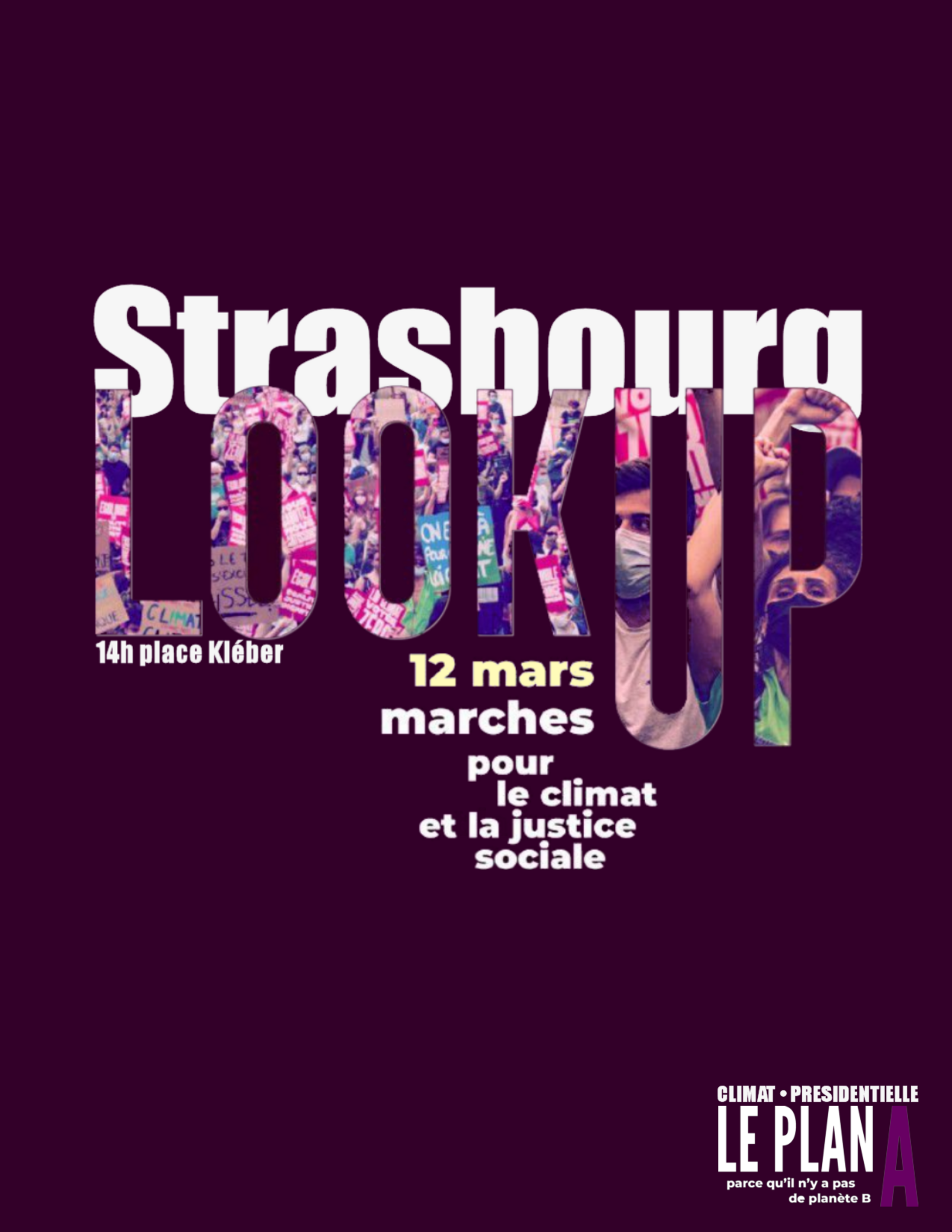 Ainsi, le samedi 12 mars, plus d’une centaine de mobilisation #Look Up auront lieu en France, dans une ambiance festive, familiale, apartisane et non-violente ! A Strasbourg, soyez au rendez-vous dès 14h, place Kléber.