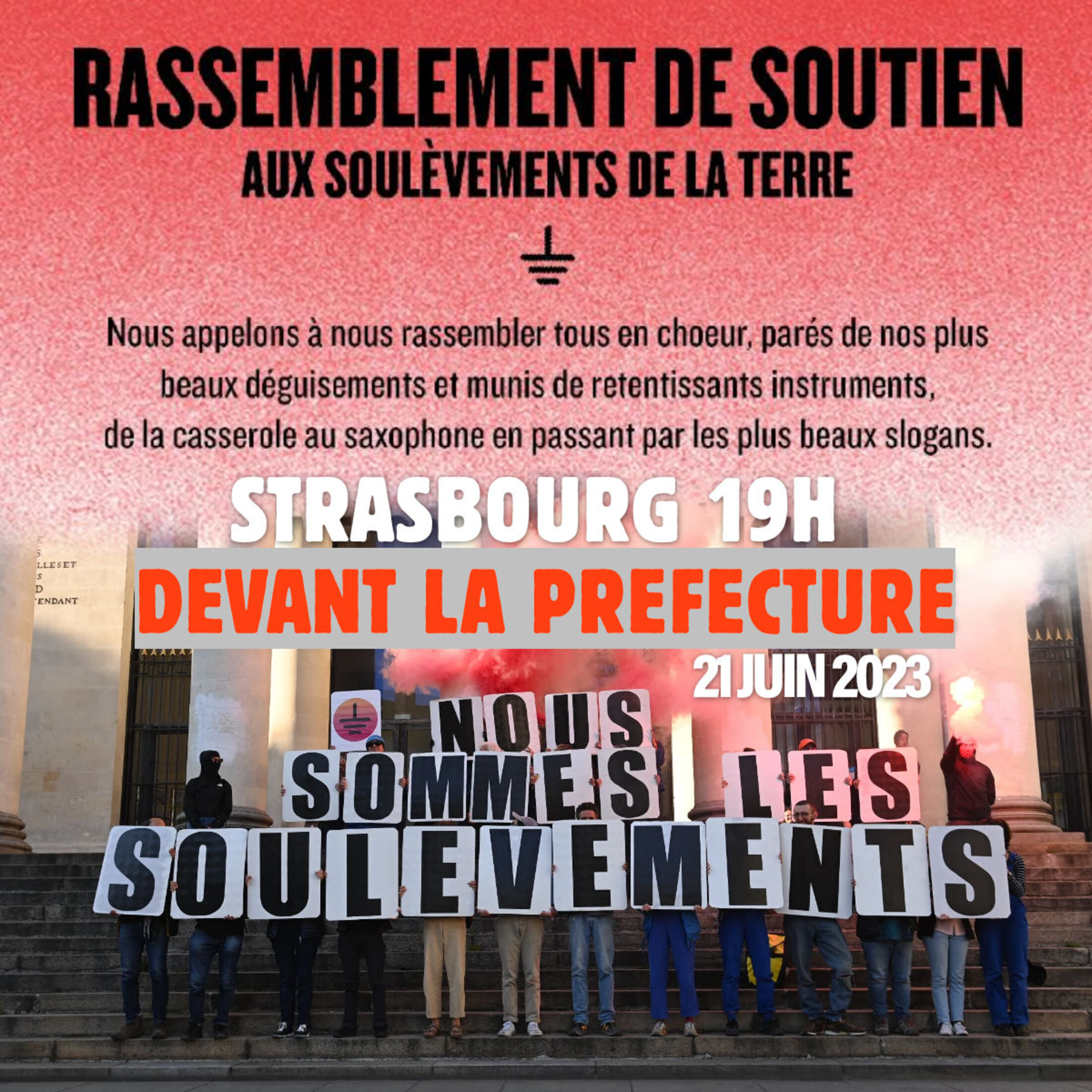 Viens soutenir Les Soulèvements de la Terre à 19h, devant la préfecture à Strasbourg.