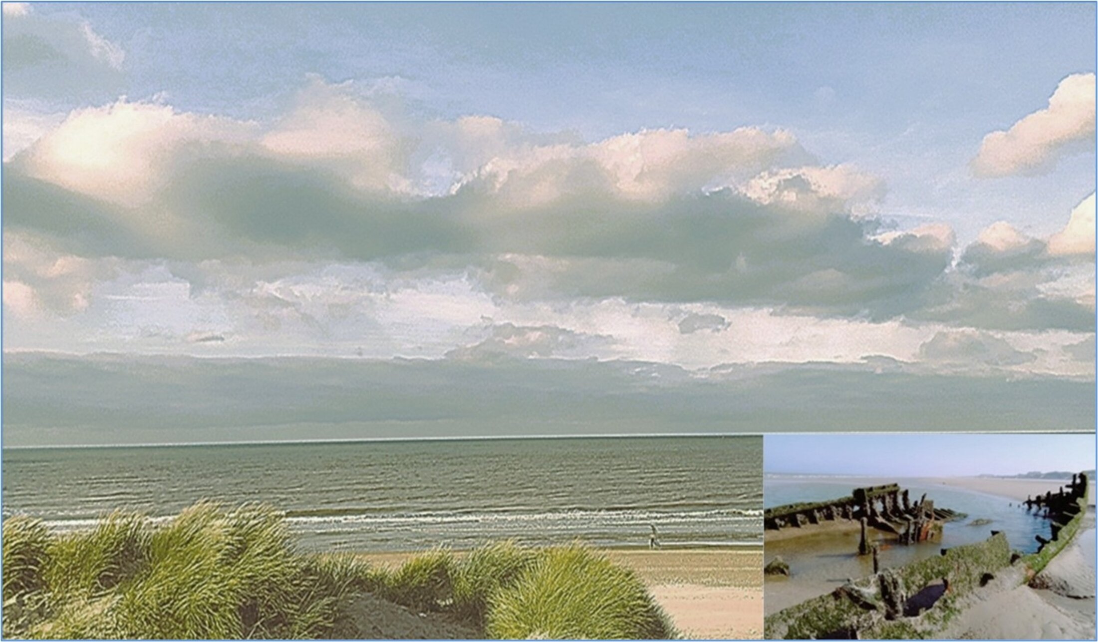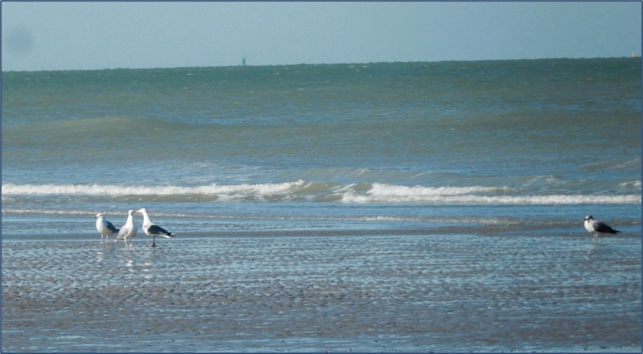 Juste un peu plus loin, l’horizon tombe son manteau obscur et mélancolique et se pare d’un fatras gris bleuté, palette de nuances émeraudées et saphirines de la côte d’opale. A cor rauque et à cri aigu, au fil de quelques ricanements perçants, les oiseaux emblématiques marins s’accordent de concert à enchanter l’estran et les dunes de la mer du nord réveillant parfois quelques trésors insoupçonnés. De ci, de là, en toutes saisons, ils vagabondent sous les regards amusés des habitués, des curieux, des fêtards, des vacanciers ou des touristes d’un jour.