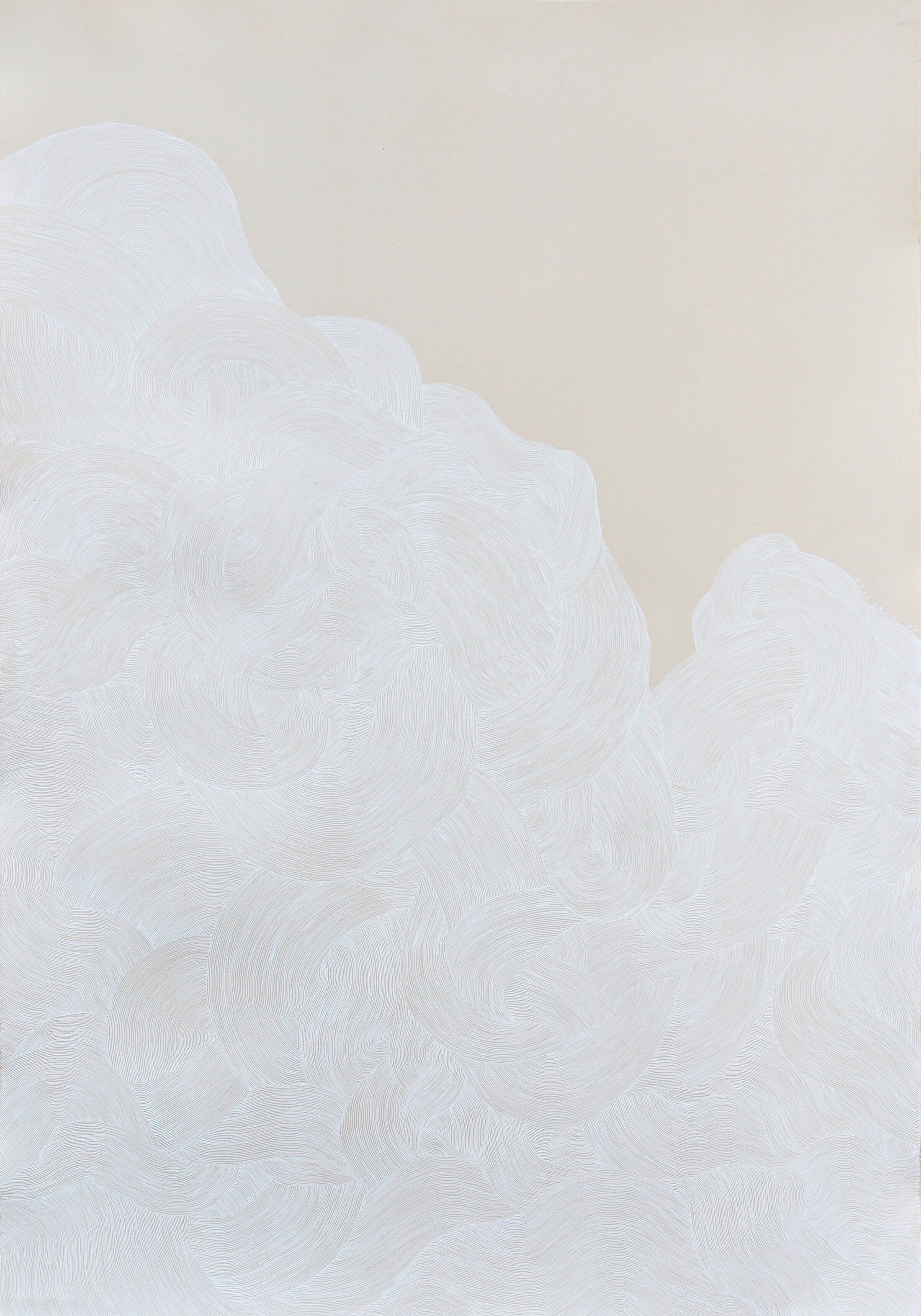Il est un mode du dessin où le trait, loin de cerner une figure, dans son cheminement même et sa répétition, génère une surface. Dans l'instant, cette activité 2 ne se connaît pas de limites, et à perpétuité recouvrirait le monde. Mais voici qu'elle a choisi de s'exercer dans un format trop petit, si bien que stoppée par les bords elle feint de se poursuivre ; et trop grand car, nécessairement orientée, elle est vaincue à son flanc par la puissante suggestion du fond indéfini. Il en résulte une forme à peine préméditée, sans intention mimétique ou décorative, plutôt comme un destin : la rencontre du désir infini et de la contingence.