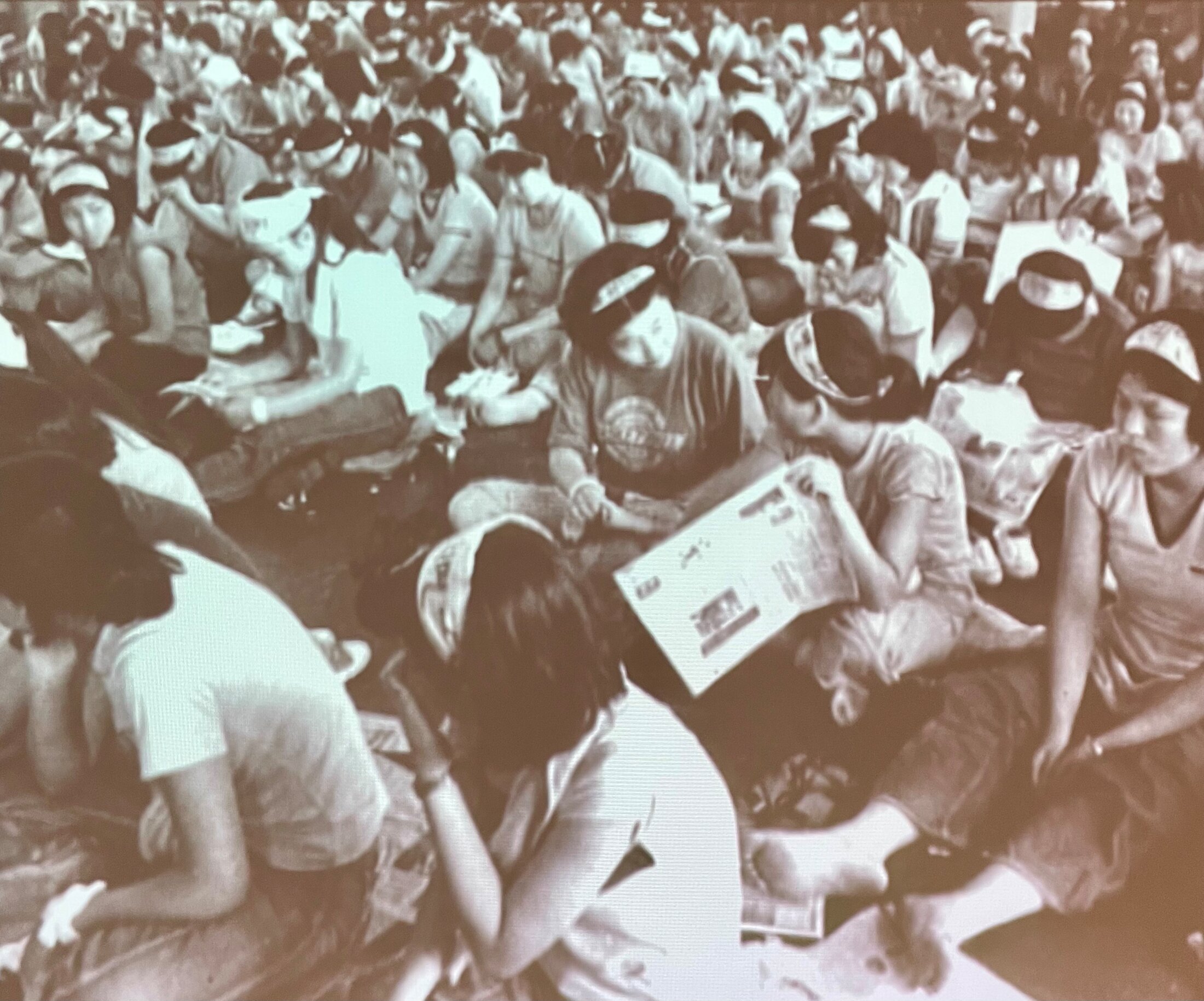 C’est dans ce contexte que naît Lumière d’une usine, pièce musicale clandestine écrite en 1978 par Kim Min-ki, dont j’avais déjà fait le portrait pour Korea.net, à l’occasion d’un concert hommage au Casino de Paris en 2022. Inspirée par la condition ouvrière, enregistrée en secret sur cassette, cette œuvre est un manifeste. Elle dit la sueur, les cadences, le dur labeur, l’aspiration à la dignité. Et elle préfigure, en creux, l’élan populaire de Gwangju quelques années plus tard.