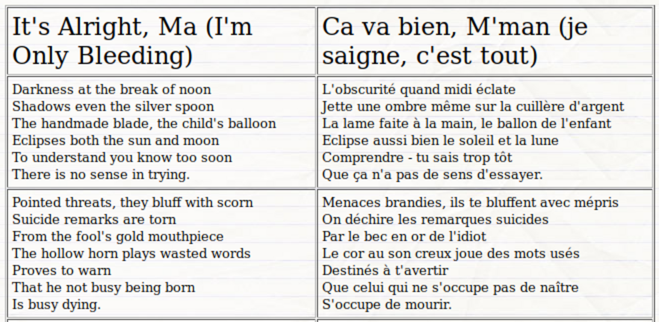 Enfin, LA chanson que j'emporterais sur l'arche de Noé avec le Howl de Ginsberg et l'Ordre du discours de Michel Foucault et des playlists de musiques indienne et africaine, toute la collection de radiodrame, et puis tiens tout Dylan finalement et tout Gérard Manset et puis l'Art de la fugue et quelques autres trucs par Jordi Savall et Figueras et il faudra que je complète encore un peu d’œuvres majeures diverses. Moins on en a plus il faut en jouir.