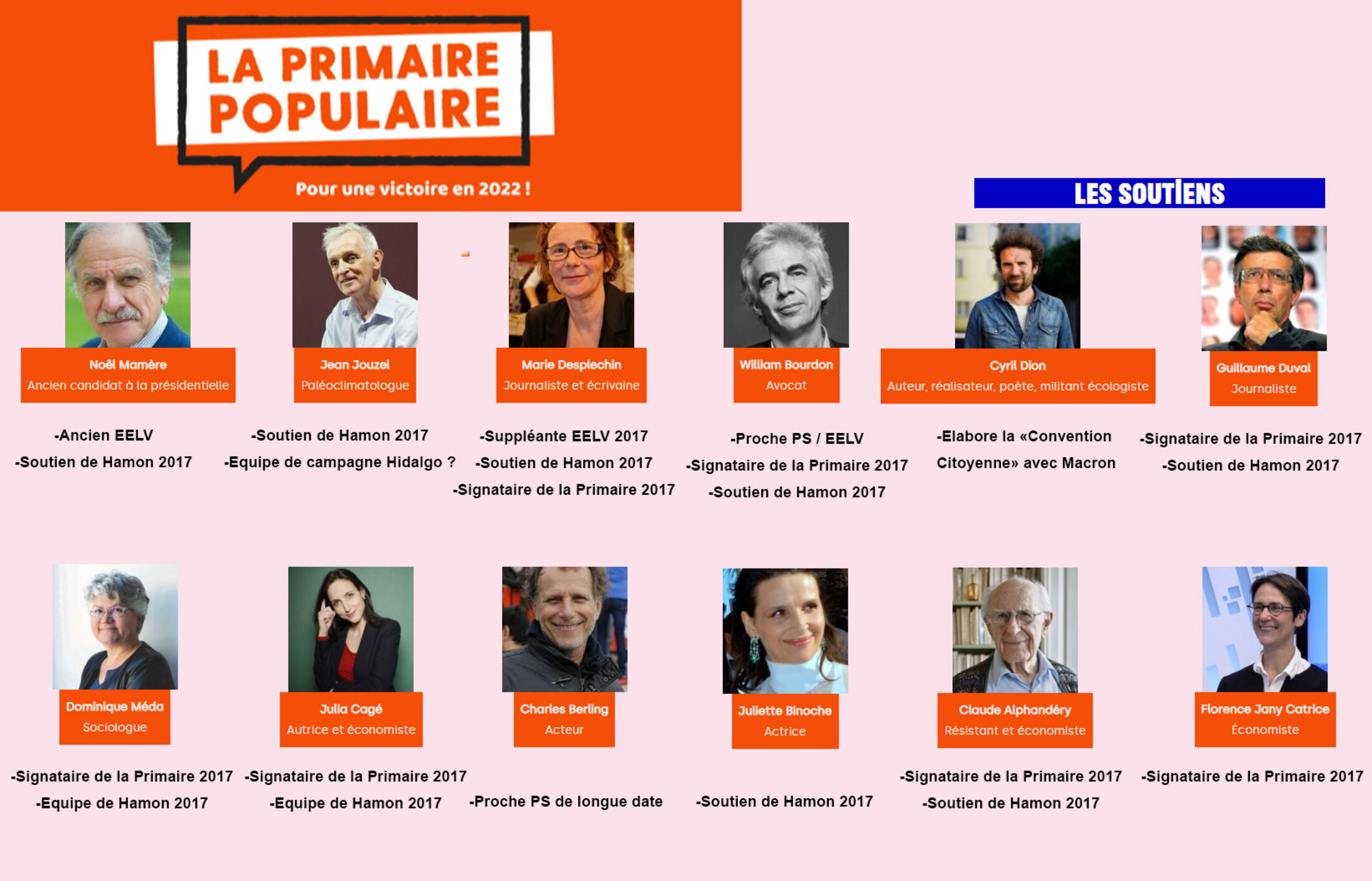 Cette investiture n’aura finalement reçu que l'aval de quelques proches du Parti Socialiste, dont plus d’un tiers, sur la petite centaine de personnalités qui soutiennent la PP, étaient déjà des appelants à la Primaire de 2017 (le couple Cagé-Piketty, Méda, Glucksmann, Guillebaud, Marie Desplechin...(2)), ou des soutiens de Hamon (Binoche, Jouzel, Mamère...(3)).