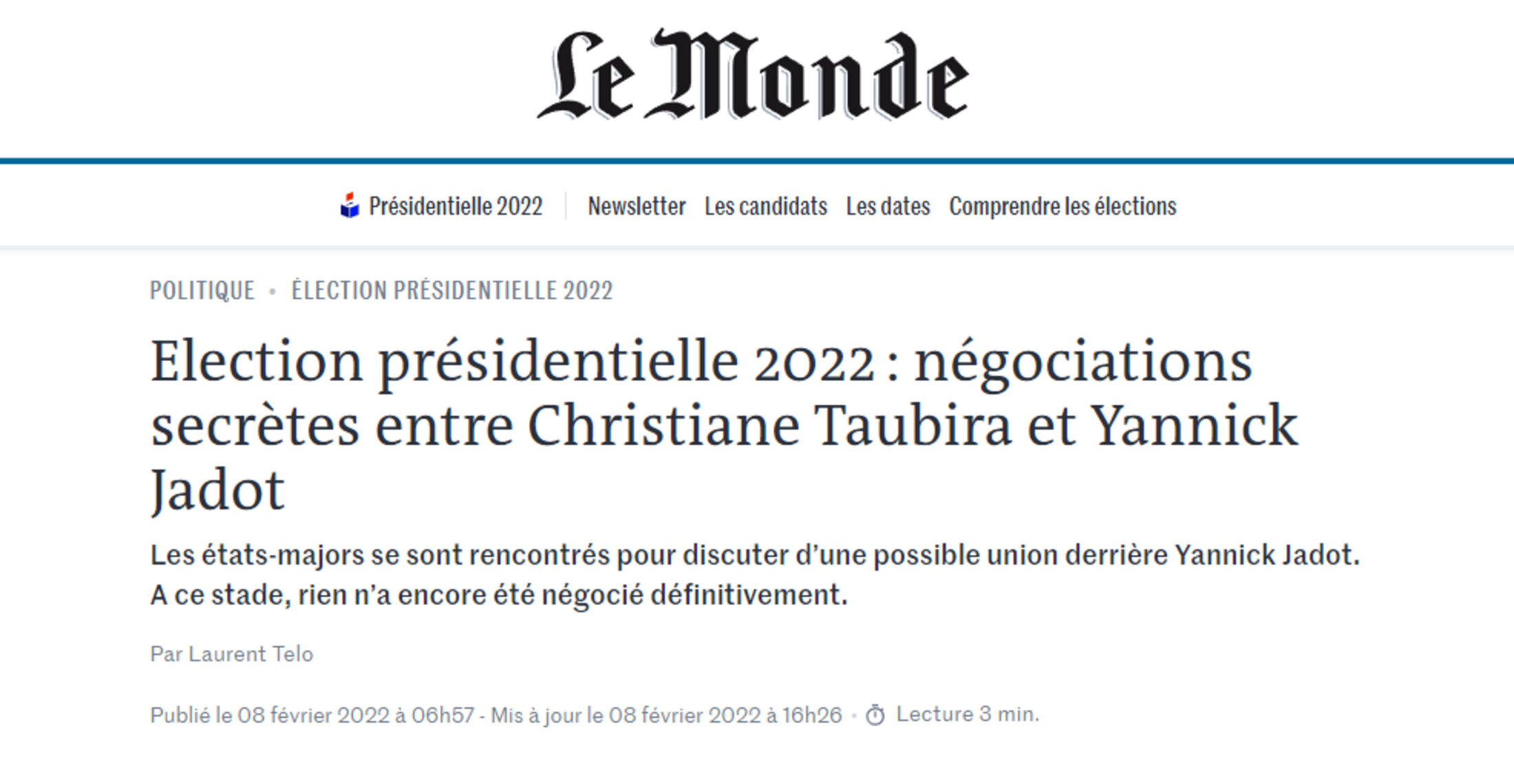 Le plus difficile n'étant plus qu'à faire abstraction de la charge que représente l’intronisation récente et malgré tout significative de la Primaire Populaire. Un ralliement de Taubira à Jadot pourrait être une sortie contentant à peu près tout ce petit monde puisque le candidat d'EELV est arrivé second de cette investiture. Cet article n'était pas encore terminé que sortait déjà l'information d'une rencontre entre les équipes des deux candidats, même si il n'y a apparemment pas eu de décision pour le moment.