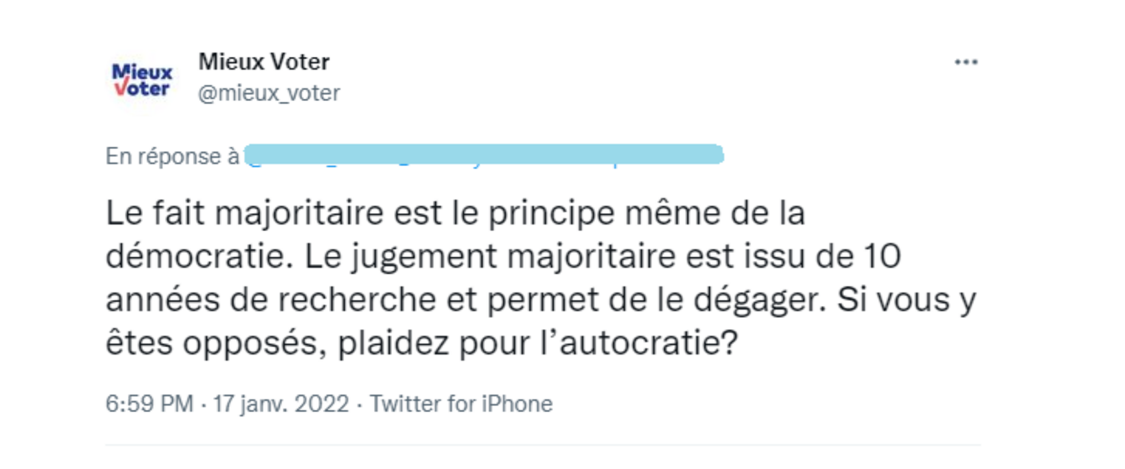 (2) : Site de Mieux Voter : "Le Jugement majoritaire est la méthode de vote à ce jour la plus fiable pour mesurer l’opinion..."
