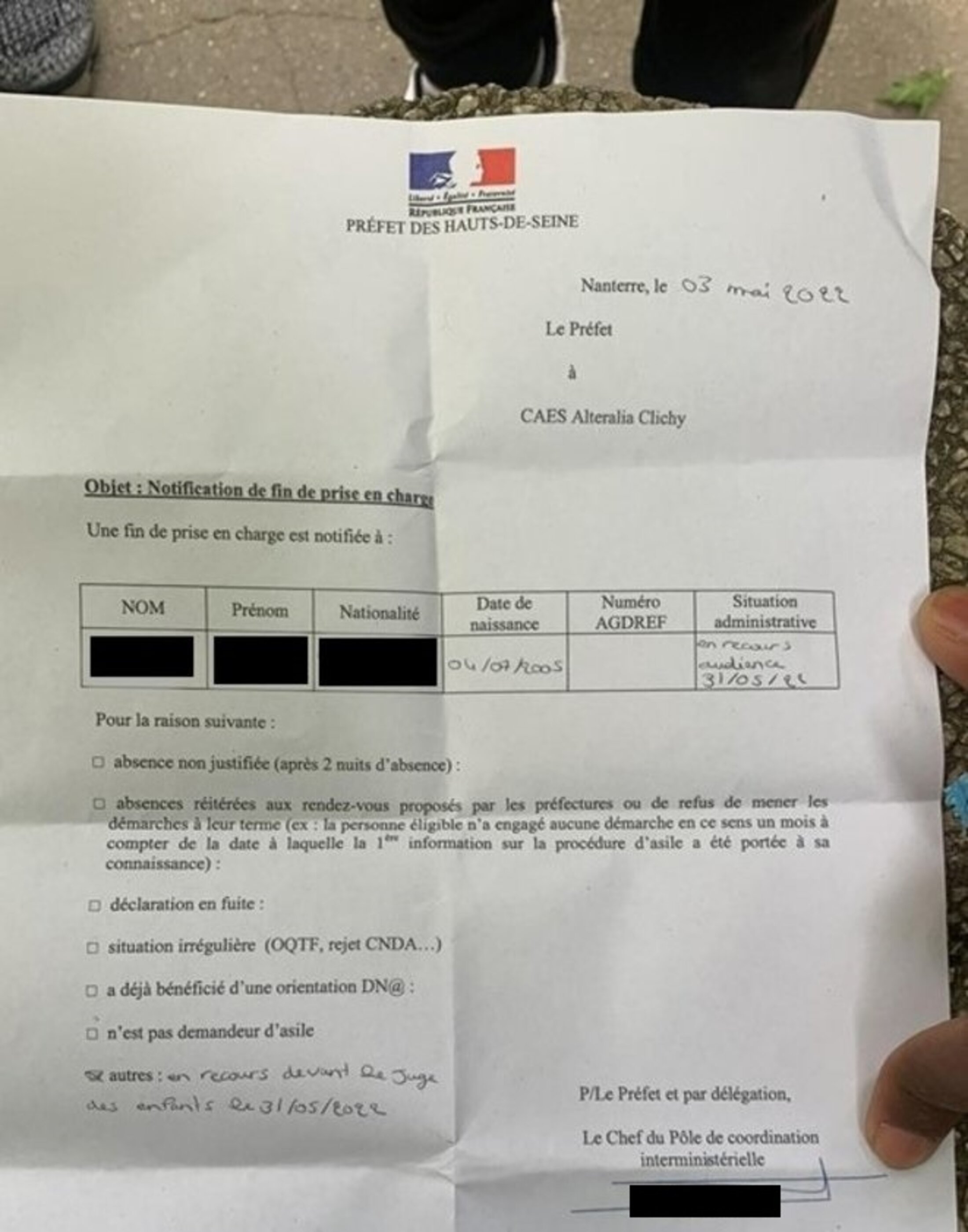 Mais, la surprise et l’incompréhension sont énormes pour une trentaine d’entre eux lorsqu’ils arrivent dans un des centres, à Clichy : ils sont tous remis à la rue car ils refusent d’effectuer une demande d’asile. Or, cette procédure est propre aux personnes majeures : c’est une manière de les contraindre à abandonner leur recours pour prouver leur minorité. Pendant huit heures, le ventre vide depuis la veille, les 28 jeunes exilés resteront donc devant le centre pour contester cette décision, en espérant que la PRIF et la Préfecture des Hauts-de-Seine capitulent. Malheureusement pour eux, les portes du centre resteront fermées.