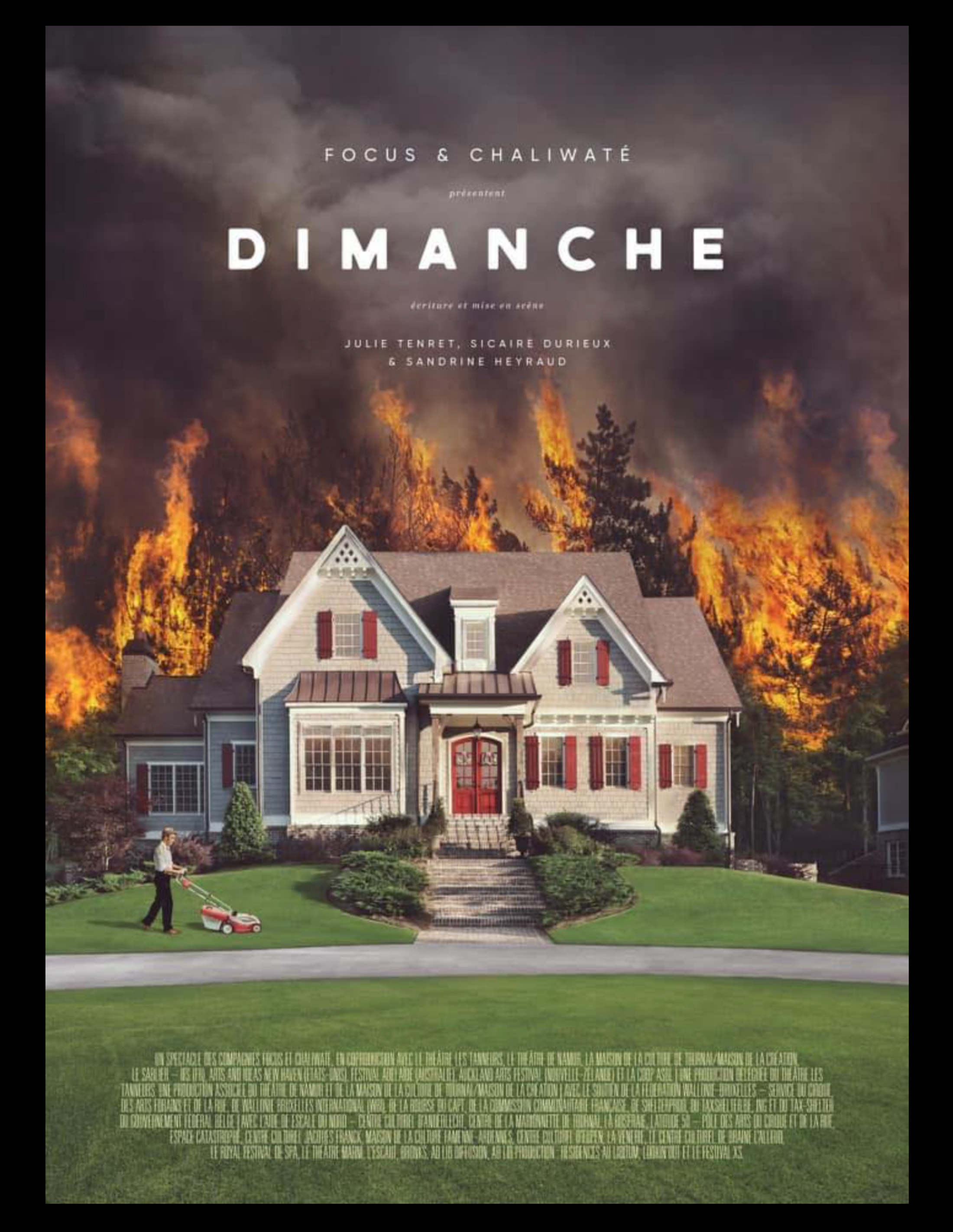 Dimanche se joue des échelles mais pas des urgences. Quand la hanche de Sandrine Heyraud devient une dune, c'est pour nous signifier que nous ne sommes pas grand chose mais quand même suffisamment de grains de sable pour nous la jouer collectif. Quand les mains des comédien·nes deviennent autant de pieuvres nageant élégamment dans les eaux profondes, je ne peux m'empêcher de penser à ces espèces mieux adaptées que nous à ce qui semble se rapprocher à beaucoup trop grands pas. Dimanche ce sont deux décors qui alternent : un intérieur de famille occidentale et des espaces naturels tels que la banquise, le désert ou l'océan. Nous voyageons entre la fin du monde et la fin de la semaine.