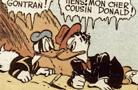 Inhumain, trop inhumain. Dans la galerie des personnages Disney, il est en un qui remporte tous les suffrages de l’exaspération auprès la quasi-totalité des jeunes lecteurs duJournal de Mickey et de Picsou Magazine : en français il porte le nom de Gontran Bonheur (Gladstone Gander en anglais).Stéréotype du dandy snob et endimanché, Gontran Bonheur n’est pas un canard, c’est un jar, un jar vantard, gandin hautain toujours tiré à quatre épingles, adepte des costumes cintrés et du cheveu rudement cranté. On imagine sans difficulté qu’une eau de Cologne lavandée recouvre le moindre soupçon de transpiration chez cet animal qui ne suinte que vanité et incompréhensible veine. Lorsqu’enfant, on ne s’est pas encore construit - comme nous le faisons fatalement tous un jour - notre petite théorie personnelle sur la chance et le bonheur, sur le bien et le mal, sur le destin et la providence, rencontrer au détour d’un récit dessiné Gontran Bonheur ébranle forcément un peu. Il incarne à n’en pas douter l’une des figures les plus authentiques de l’individu puant, égocentrique et fier de l’être. Gontran Bonheur, c’est un aristocrate qui aurait partie liée avec un sort nourri d'une injustice écrasante telle que peuvent nous la renvoyer ceux qui ne se sont donnés que la peine de naître, ceux-là mêmes qui n’ont pas besoin de réussir quoique ce soit puisque précisément "tout" leur réussit.