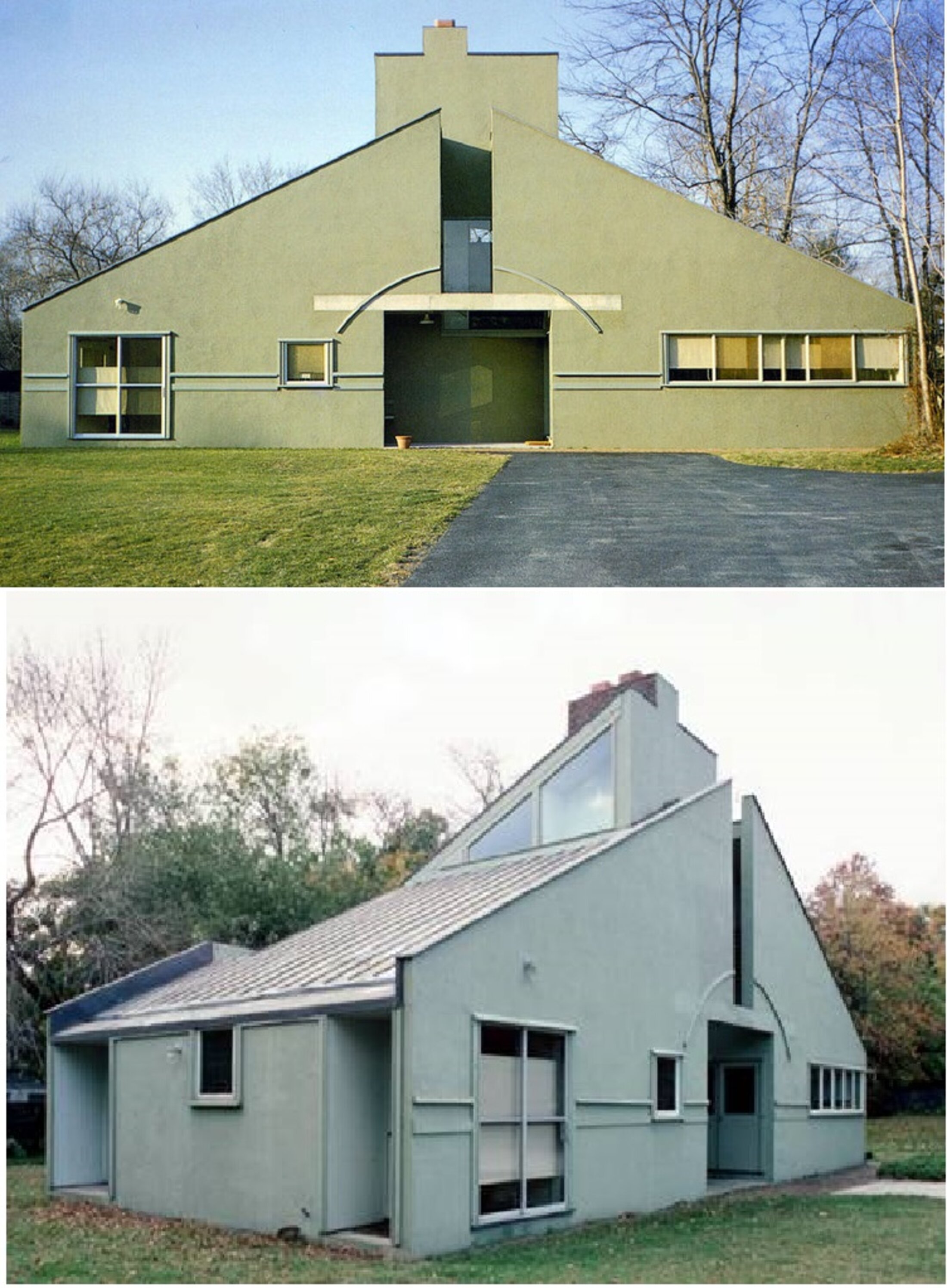 A toute « simplification » de son art, Venturi préfère la recherche de « l’unité difficile, à rejoindre par le biais d’un processus inclusif, et non l’unité facile, obtenue par le biais d’un processus d’exclusion ». Les mots ont un sens. Politique, on l’a dit. Et trouvent une merveilleuse illustration dans la Vanna House, réalisée pour la mère de l’architecte en 1962. Les formes les plus diverses, géométriques (le carré, le triangle, l’arc de cercle…) typologiques (l’énorme cheminée…), semblent entrer en une douce collision – que vient dramatiser la faille centrale de l’édifice. Plus savamment encore, les allusions viennent s’entremêler, entre le toit Shingle, la fenêtre horizontale à la Le Corbusier… ou la faille elle-même, qui se souvient de la Casa del Girasole de Luigi Moretti.