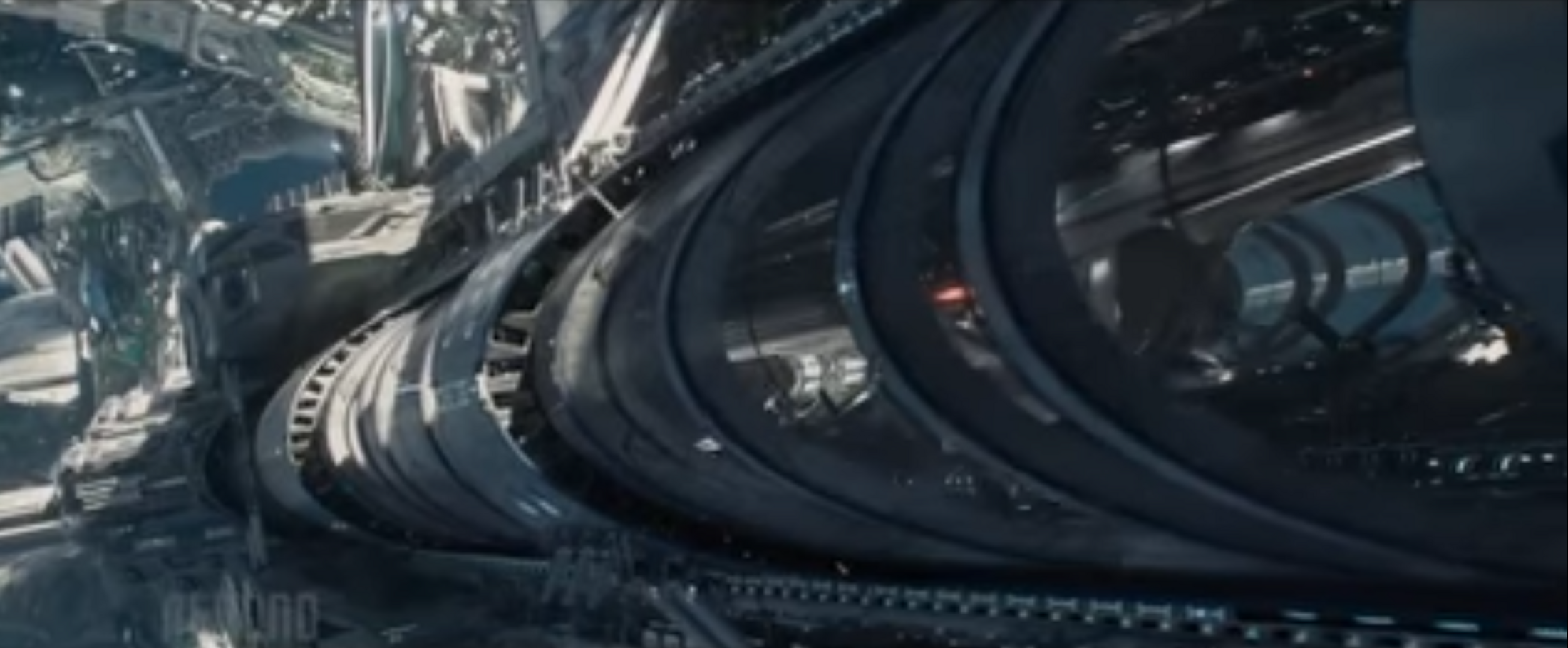 Au-delà d’Inception, la petite séance de pliage de Docteur Strange rappelle pourtant d’autres images, plus récentes encore. Dans Star Trek sans limites, dont les affiches paradaient cet été jusque sur les autobus chinois, une ville littéralement recourbée permettait elle aussi d’étonnantes condensations : dessus, dessous, en face, elle était partout, pour le plus grand bonheur des amateurs de courses poursuites en vaisseaux spatiaux. Une ville-satellite, en gigantesques anneaux totalement urbanisés. L’idée valait le coup d’œil. Loin de tout pouvoir ésotérique, elle trouvait d’ailleurs sa raison d’être dans une physique amusante : dans un milieu sans gravité, celle-ci peut être réorganisée au bon vouloir des architectes. Dans l’espace, votre voisin le plus proche pourrait bien être suspendu à votre plafond.