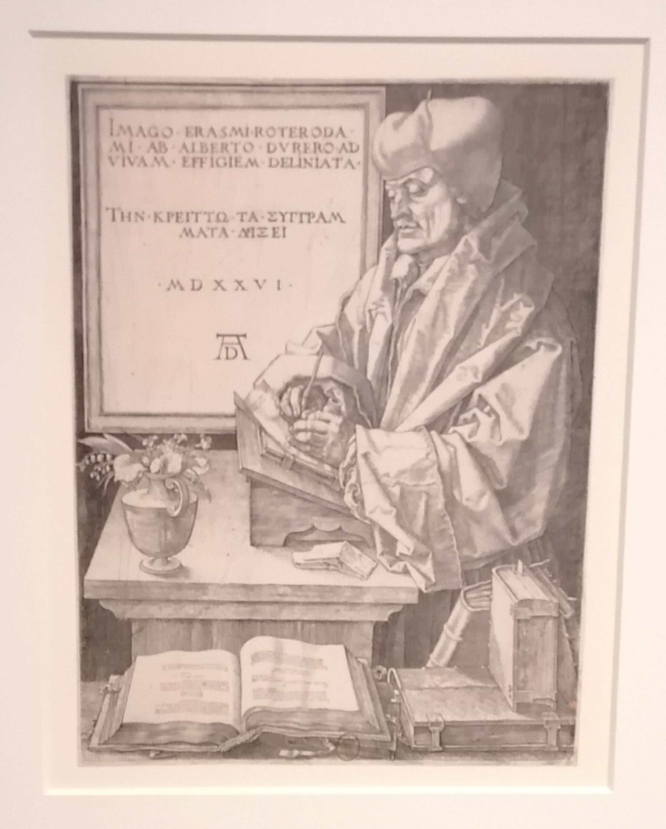 La toute dernière de ces bulles est consacrée aux portraits, sujet auquel Dürer s’est attelé à la fin de sa vie, et notamment celui d’Érasme. Profondément impliqué dans la révolution humaniste de son époque, Albrecht Dürer a développé en parallèle de son art une réflexion sur la technique, en publiant notamment un traité sur les proportions humaines, dont plusieurs feuilles sont d’ailleurs montrées plus tôt dans l’exposition.
