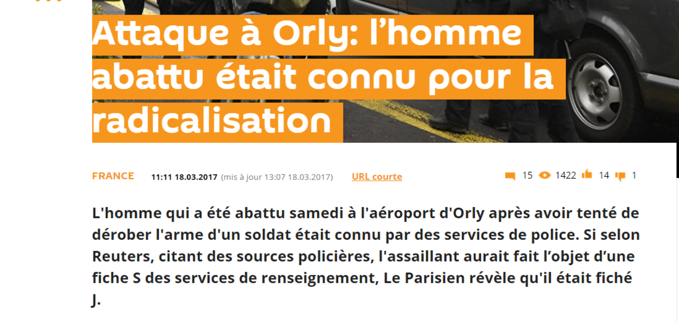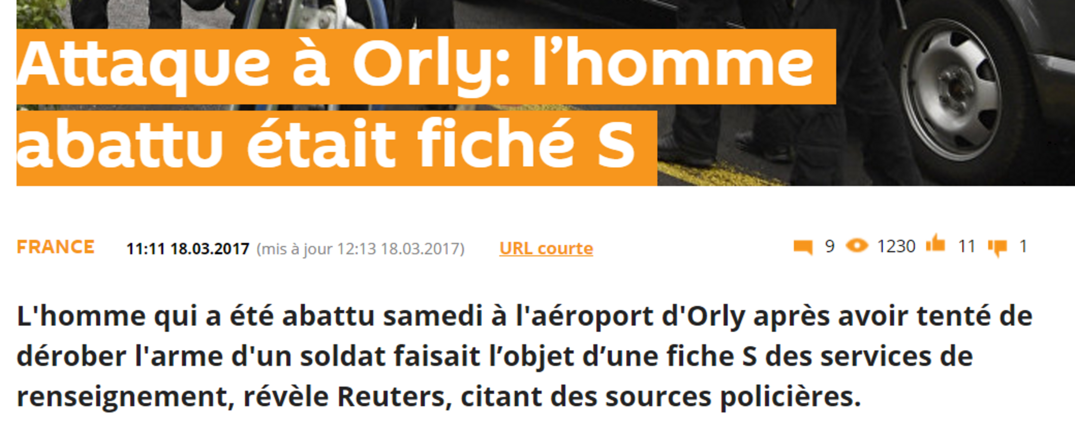Alors que s'est-il passé ? J'ai l'impression, mais ce n'est que mon avis, que les journalistes de Reuters ou les autres ont pu confondre un S et un J, une fiche S et une fiche J. J'ai aussi l'impression que l'urgence dans laquelle ils travaillent dans ces moments est très féconde en erreurs. Des erreurs qui peuvent être graves dans un contexte où certains politiques réclament toujours que les personnes fichées S soit enfermées.