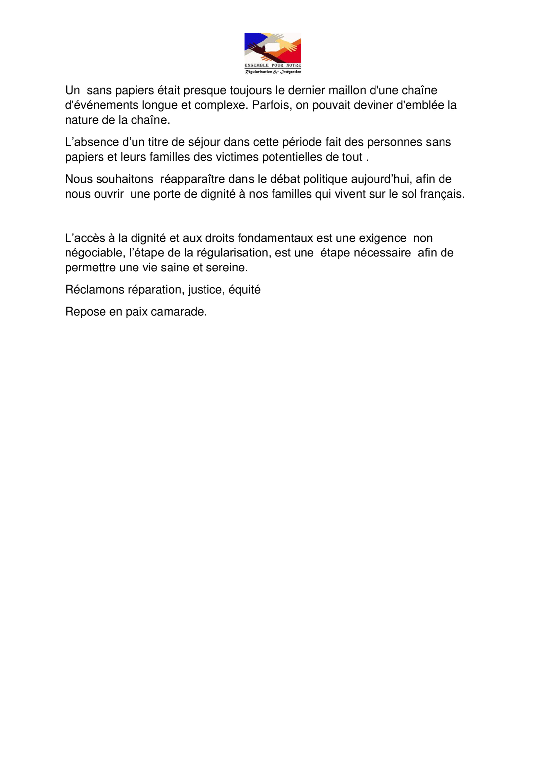 Barry Keita, sans papiers , il a vécu que 30 ans