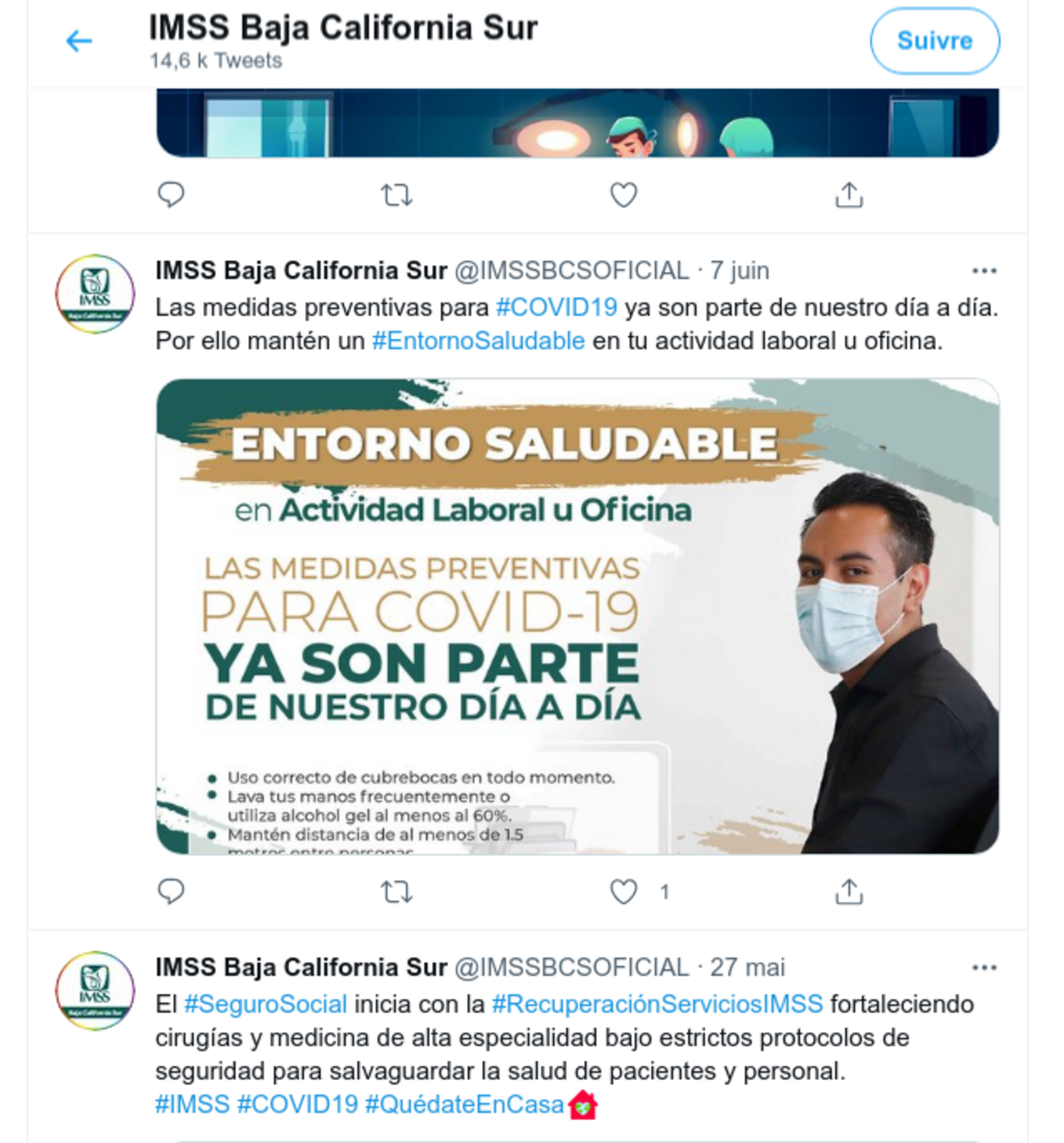 Il sait certainement, en effet, que de telles informations pourraient lui valoir une suspension de son compte par Twitter : le compte Twitter de l’IMSS-Basse-Californie-du-Sud, déjà suspendu pendant une dizaine de jours fin mai — comme en témoigne l’écart inhabituel entre deux tweets (Fig.11) — faisait l’objet d’une nouvelle suspension depuis plus de 15 jours lors de la rédaction de ce billet, laissant penser à une suspension définitive.