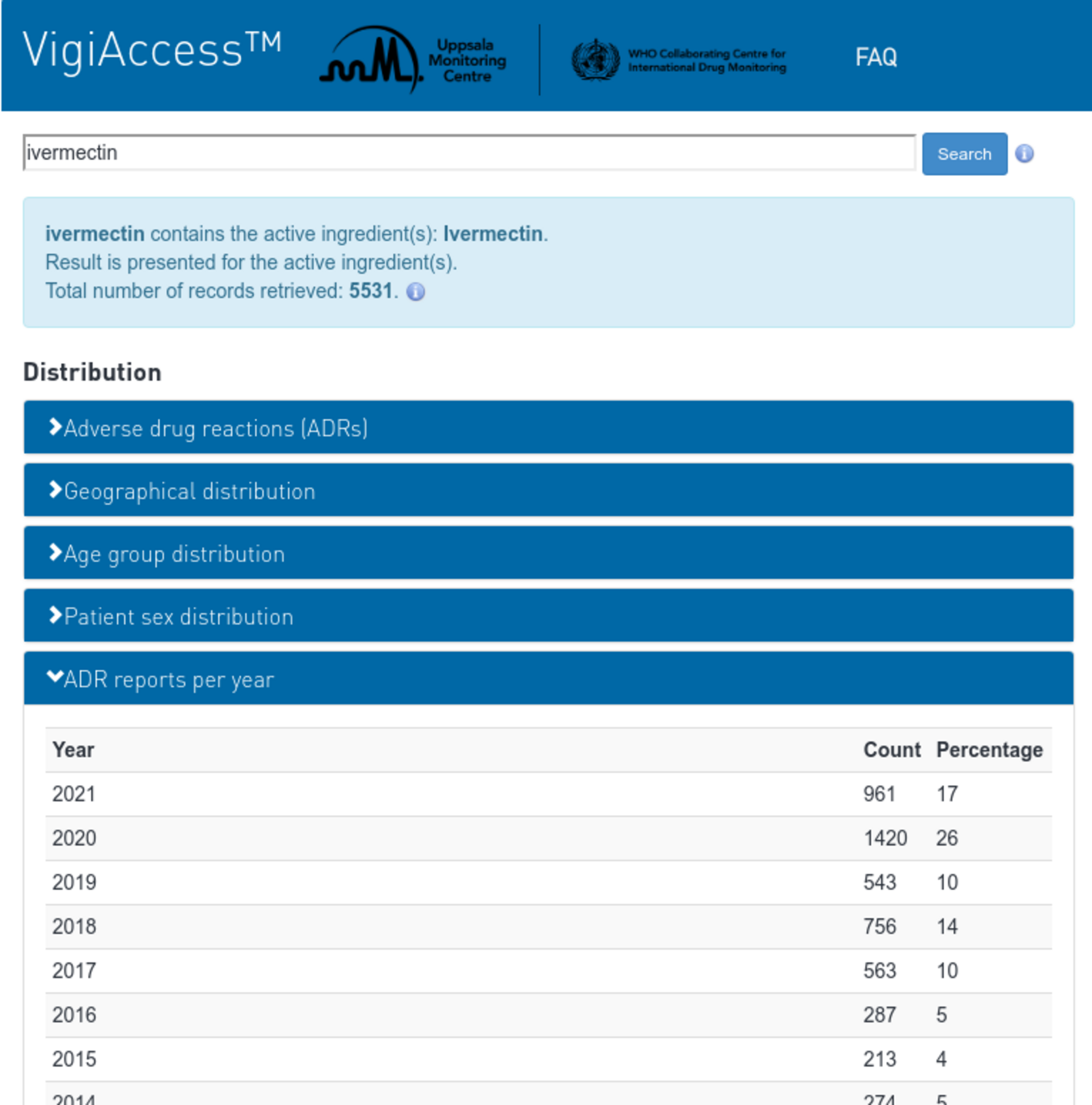 On aurait pu penser que le déclin épidémique observé depuis janvier 2021, la publication du bilan dressé par la ville de Mexico — calculant une baisse de 75 % du risque d’hospitalisation pour les personnes recevant le kit — ou la parution en 2021 d’une dizaine de méta-analyses favorables à l’usage généralisé de l’ivermectine en traitement précoce du Covid-19, le tout couplé à une absence de remontées négatives du terrain et à un profil de sécurité plus que rassurant (Fig.1), eussent conduit à une plus large acceptation de l’ivermectine par les autorités réticentes.