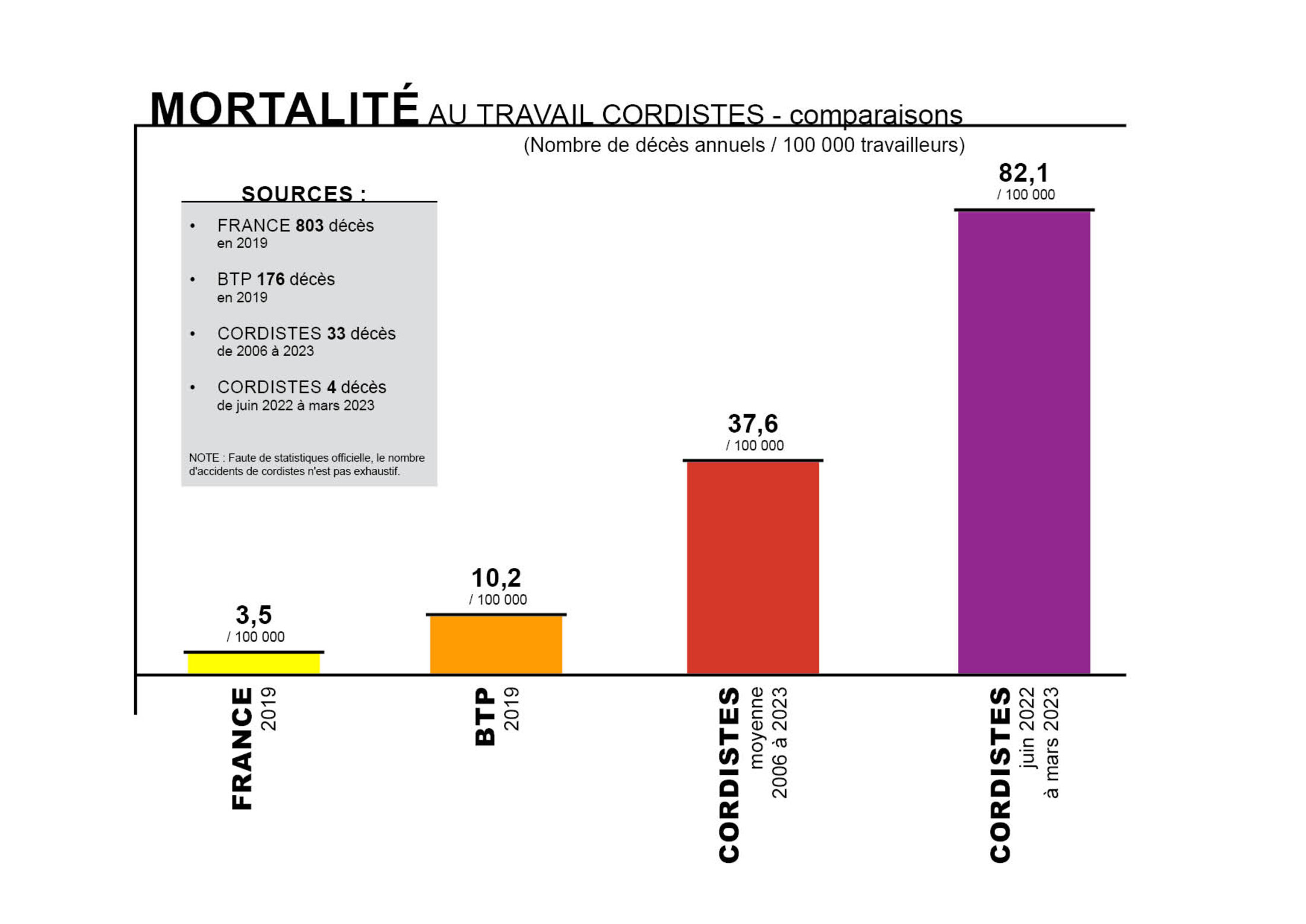 Avec ces 4 morts, la profession cordiste présente un taux de 82 morts au travail pour 100 000 travailleurs.