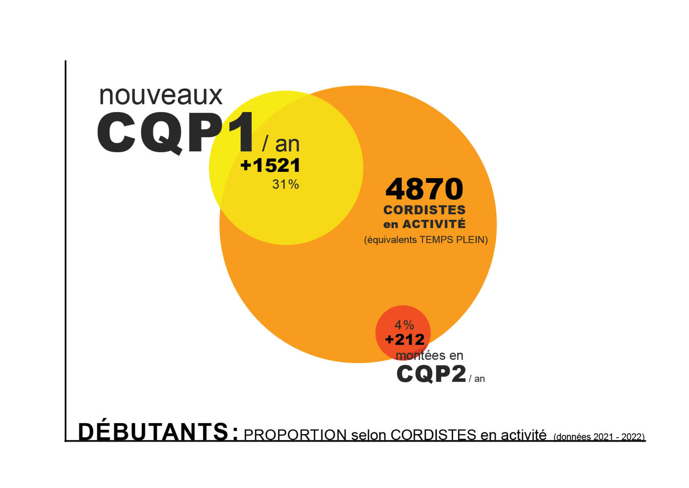 A contrario le nombre de cordistes accédant à un niveau supérieur, matérialisé par le CQP 2 (Technicien Cordiste), dépasse difficilement les 210 par an. Soit seulement 4 % des effectifs qui montent en compétence annuellement. Et encore, l’état actuel de cette formation ne donne aucune compétence en matière d’encadrement et de supervision sur les chantiers.