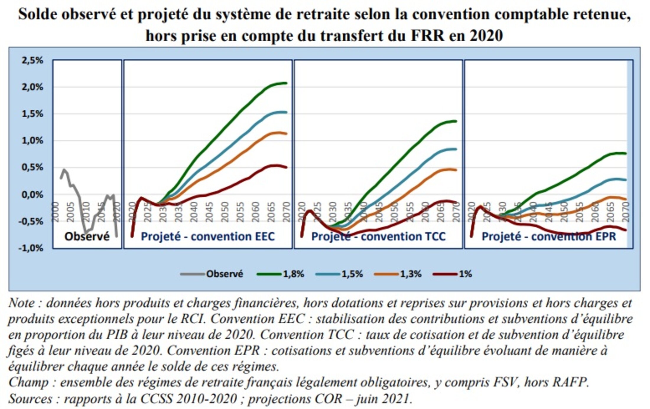 Remarque : cette convention a été utilisée prioritairement par le COR jusque dans son rapport de 2017, mais a été ensuite utilisé de façon plutôt accessoire depuis le dernier rapport de septembre 2022.