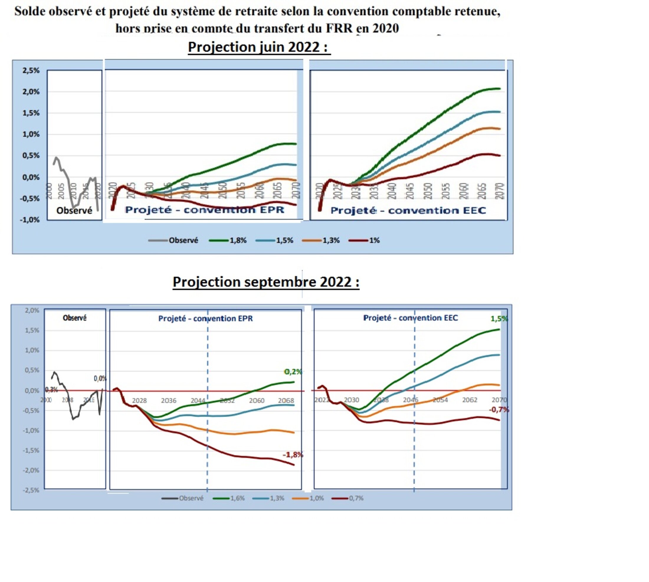 Une précision qui peut être importante : ce graphique apparaît dans un compte rendu du COR d’avril 2022, et il doit donc avoir été considéré comme encore valable a priori.
