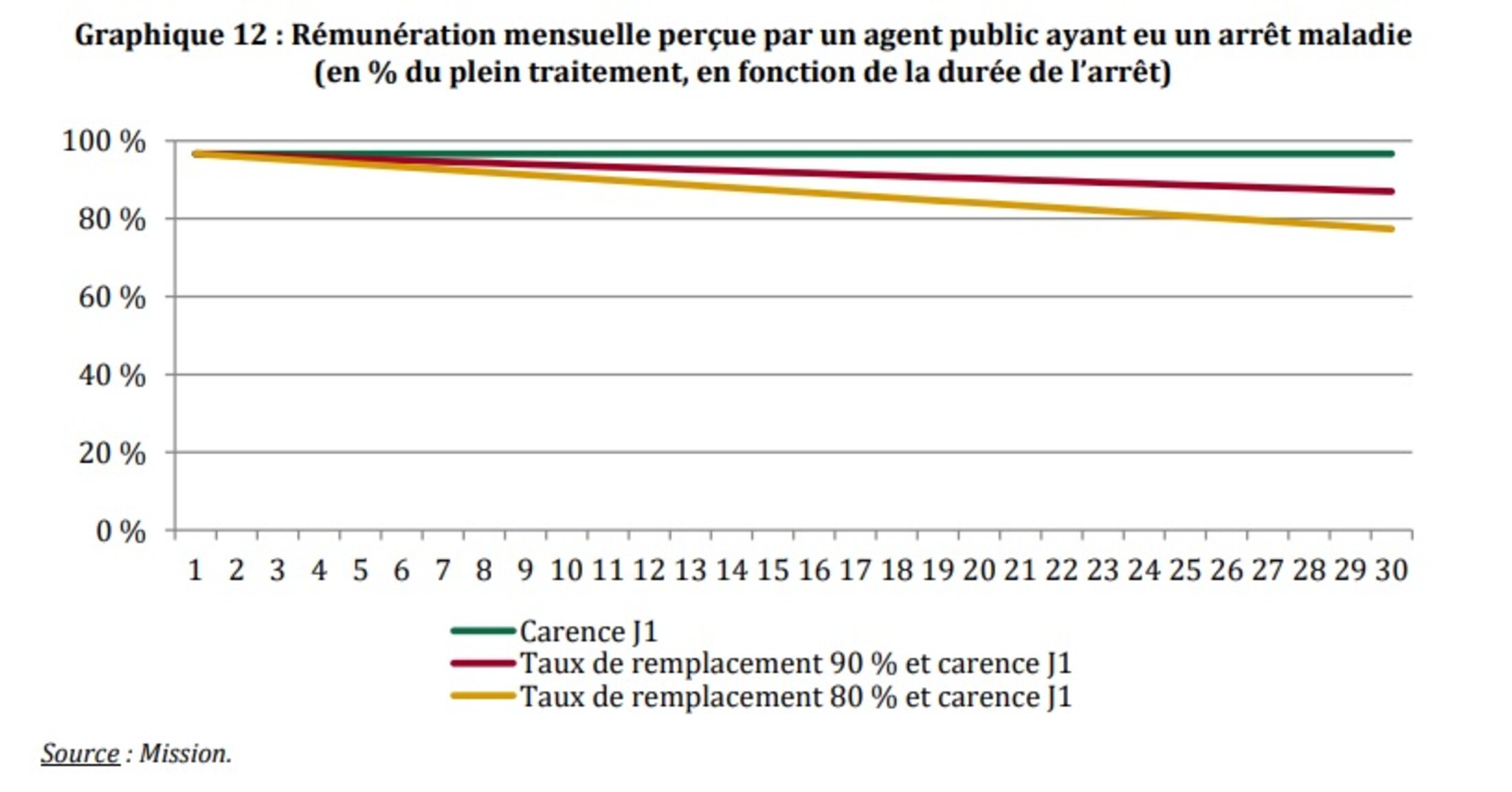 « Le maintien d’un jour de carence et l’application d’un taux de remplacement à 90 % dans la fonction publique conduirait à un régime d’indemnisation lors des arrêts maladie du même ordre que celui du secteur privé.»