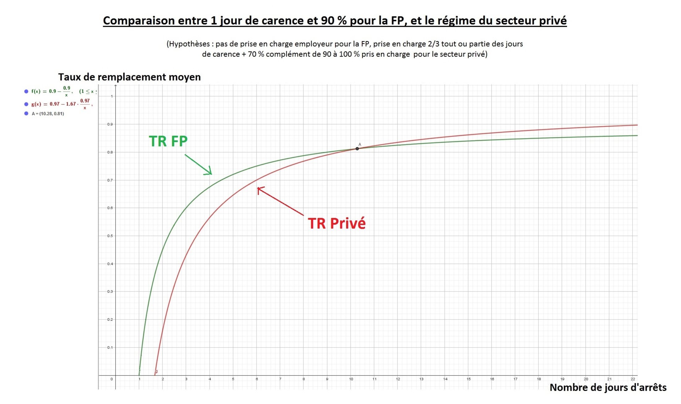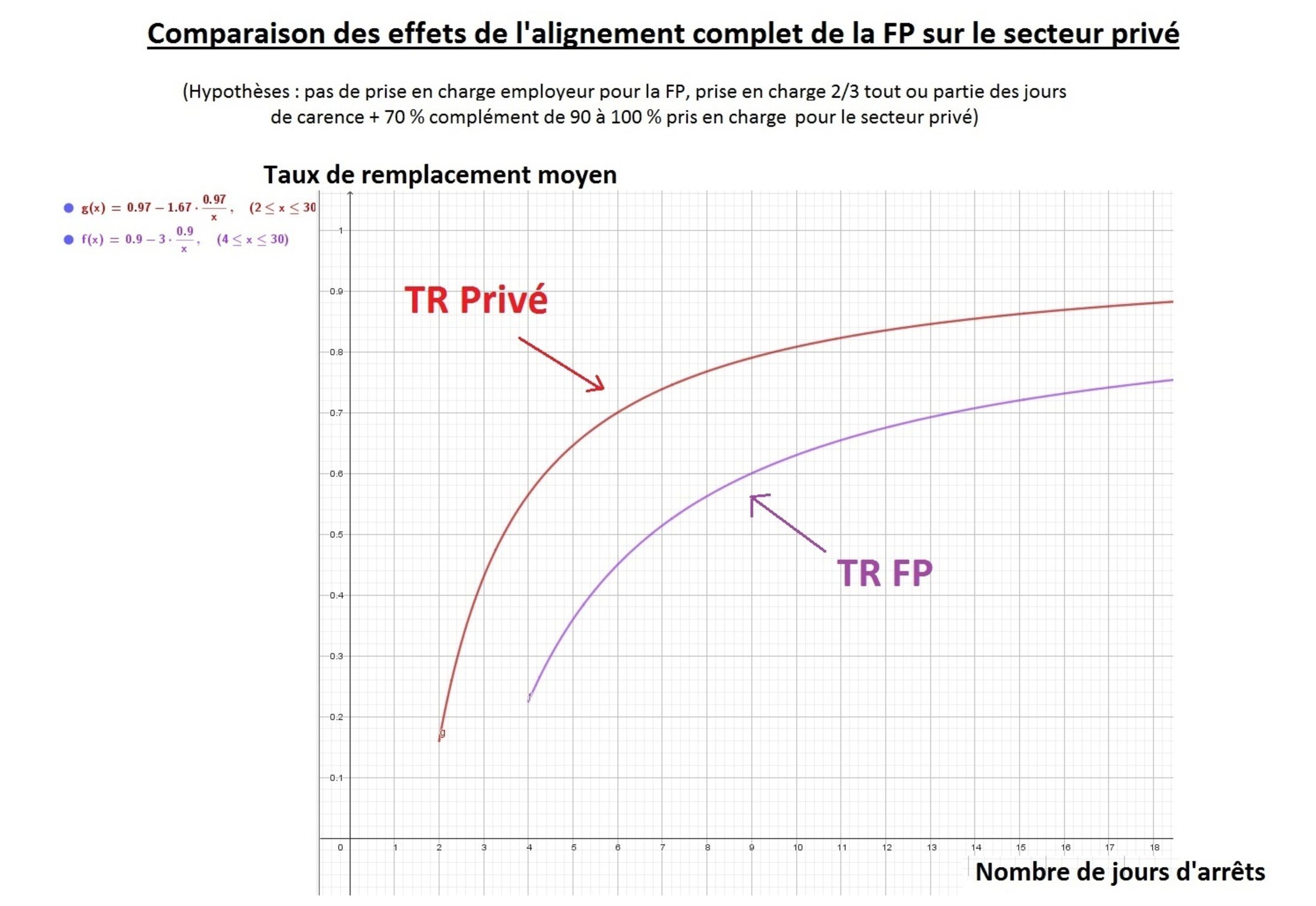 De plus et comme cela a été vu et démontré, l’application d’une seule des deux mesures - passage ne serait-ce qu’à 2 jours de carence OU passage à un TR de 90 % - désavantagerait de la même façon la FP par rapport au secteur privé.