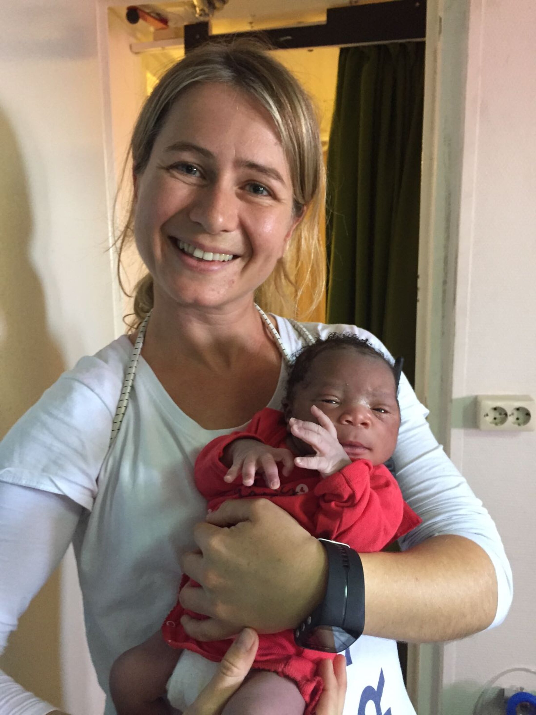 Enceinte de 9 mois, Sinsia a immédiatement été prise en charge par l'équipe de Médecins Sans Frontières, notre partenaire médical à bord. Ses contractions ont commencé vers 4 heures du matin.