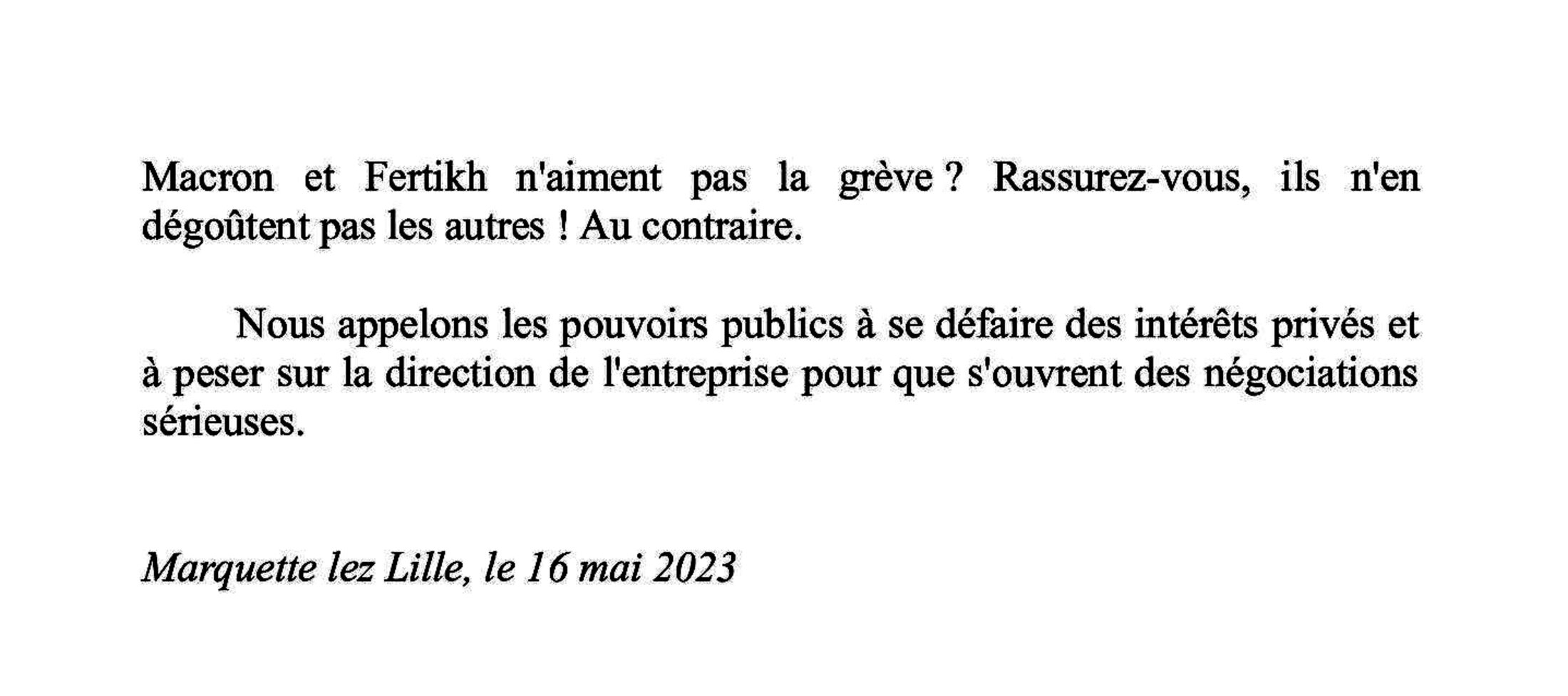 Communiqué CGT Vert Baudet - Marquette lez Lille, le 16 mai 2023