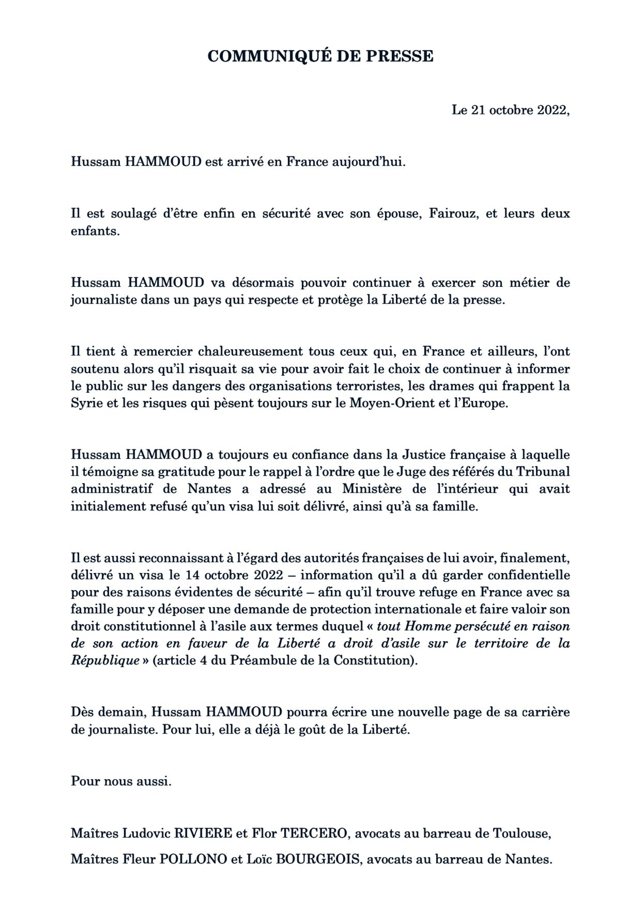Hussam Hammoud a finalement obtenu un visa humanitaire !