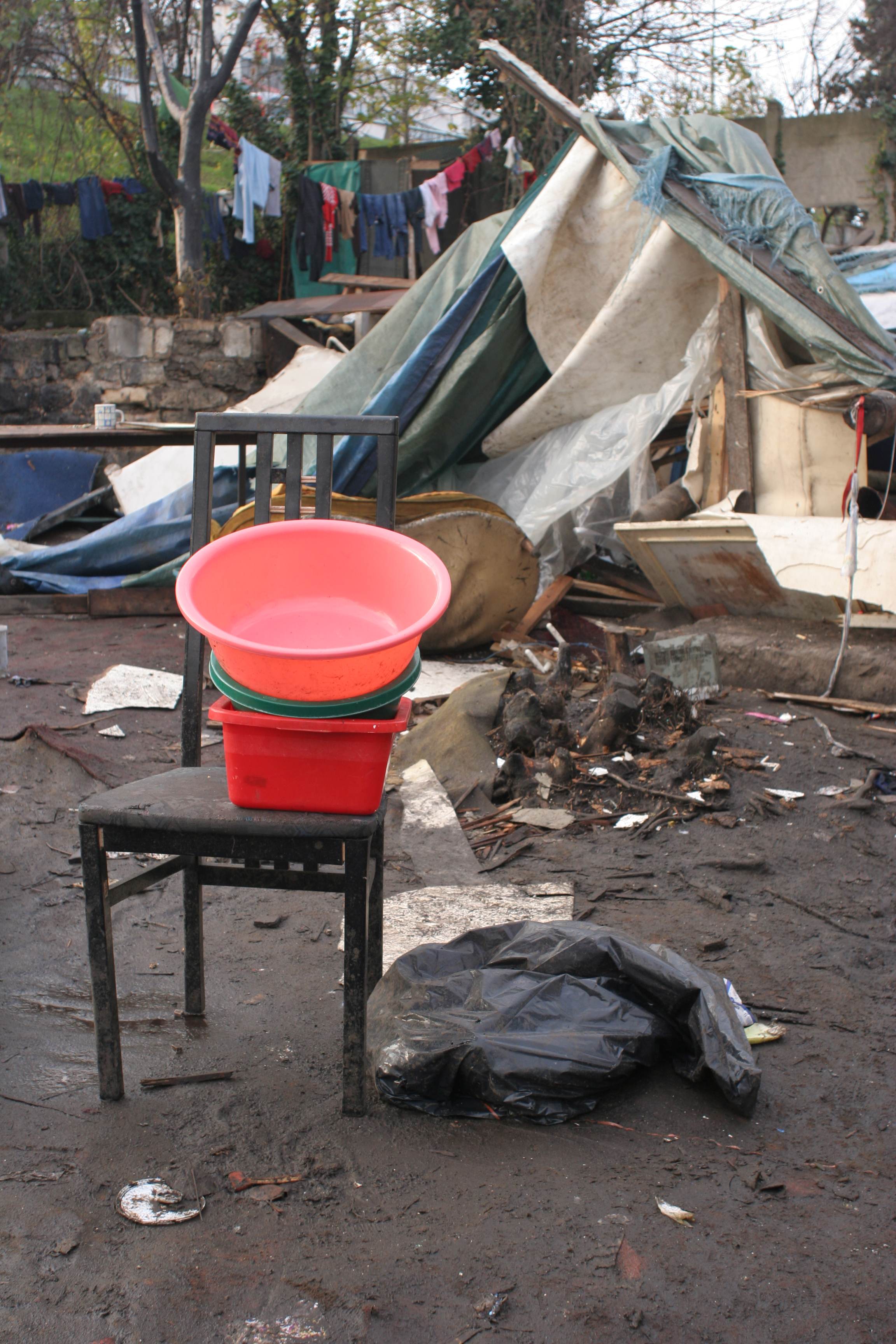 Quelques jours plus tôt, j’étais passée les rencontrer pour leur proposer de les aider. Membre d’une association, ma mission est d’accompagner les personnes en situation précaire ; les familles roms comme les « sans domicile ». Elena, son mari Micha, Nicolae et les autres cousins habitaient là, depuis six mois, au bord du périphérique. Une maisonnette et des containers squattés, quelques baraques faites de planches de bois. Ni eau ni toilette. Ils ont quitté la Roumanie et sont venus en France, bercés par l’espoir d’y trouver une meilleure vie et un travail. Une migration économique comme tant d’autres, loin des stéréotypes d’opportunistes véhiculés par la croyance populaire, Micha et ses frères se débrouillent. Comme tous les Roumains, ils bénéficient de la liberté de circulation mais ne peuvent pas travailler. Pour survivre, Micha fait les poubelles et vend ses trouvailles aux portes de Paris.