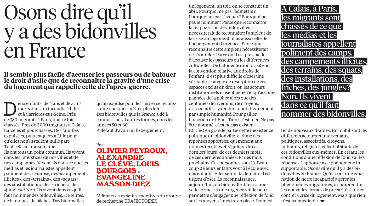 Osons dire qu'il y a des bidonvilles en France