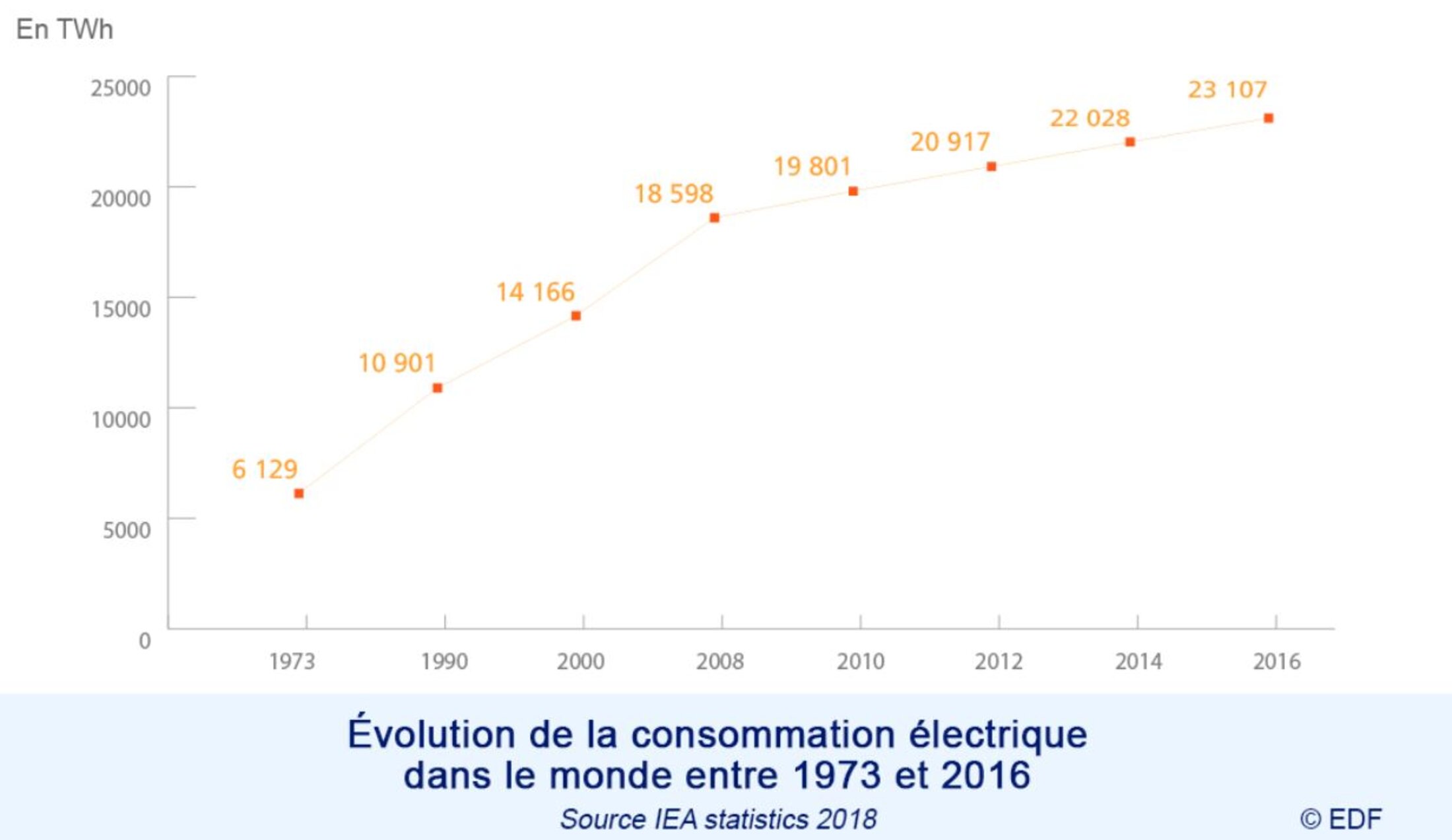 La consommation électrique mondiale a été multipliée par 4 depuis 1973 selon EDF. Avec le développement des smartphones, des appareils connectés, des sauvegardes (et de la récupération) de données, la multiplication des data-center, la consommation énergétique explose. Il y a eu une époque où l'on consommait le pétrole sans compter, ou l'on pensait qu'il était illimité et qu'on pouvait, par exemple aux Etats Unis, rouler tous les jours dans une voiture à moteur V8. La prochaine prise de conscience est peut être celle du coût énergétique des données. On connait le coût d'une requête dans un moteur de recherche: 7g de dioxyde de carbone. Mais combien consomme un smartphone si l'on prend en compte toutes ses applications, tous les serveurs qu'il fait tourner, les antennes relais qu'il sollicite, et par exemple le millier de tours Eiffels qu'il aura fallu bâtir à travers la Chine pour acheminer le niveau d'énergie nécessaire?