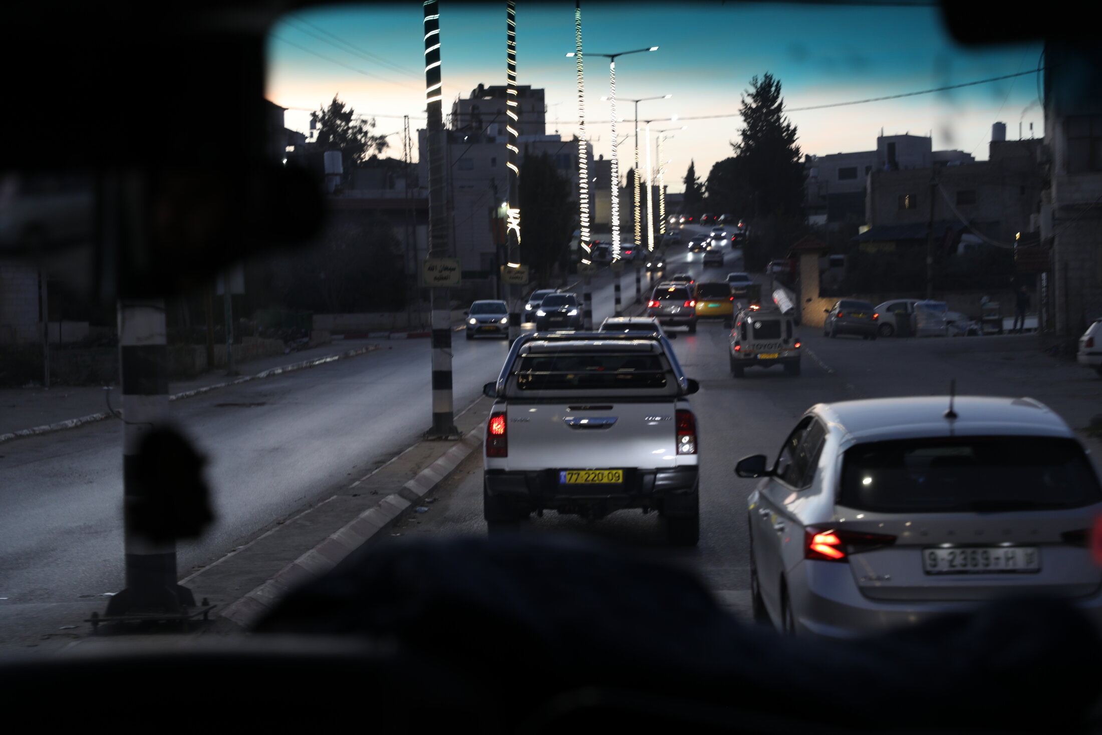 Saïd conduit. Nous roulons vite, sur les routes réservées aux voitures avec la plaque jaune, en direction de Jérusalem. Un peu avant, nous bifurquons. Ramallah est à une dizaine de kilomètres au Nord de Jérusalem. Si ce n’était le Mur, les deux villes se toucheraient. Nous franchissons un check-point sans être contrôlés -plus facile dans ce sens là- et passons de l’autre côté du Mur. Les routes sont plus cahoteuses. Le jour se lève sur Ramallah. Nous sommes en Palestine.