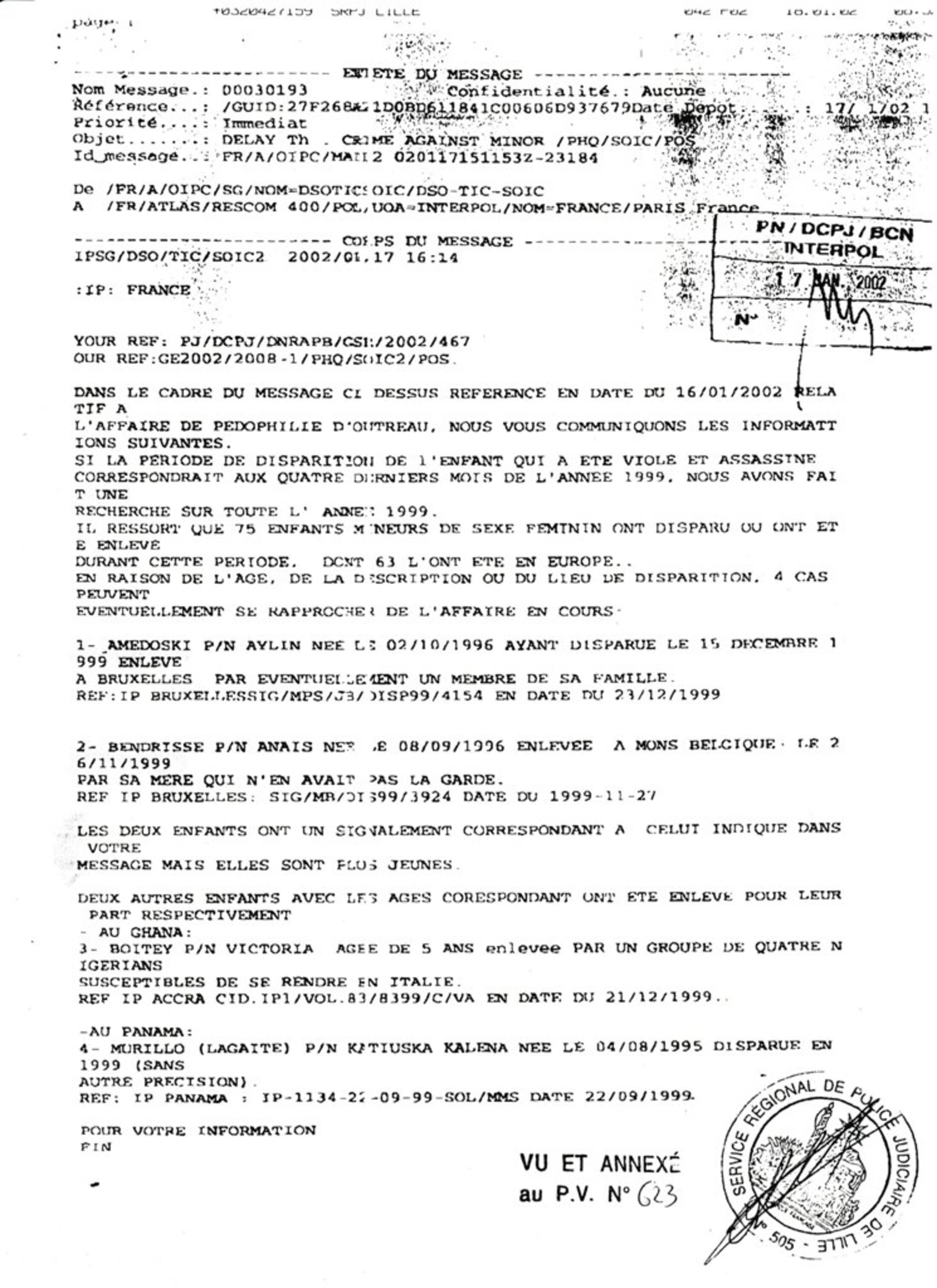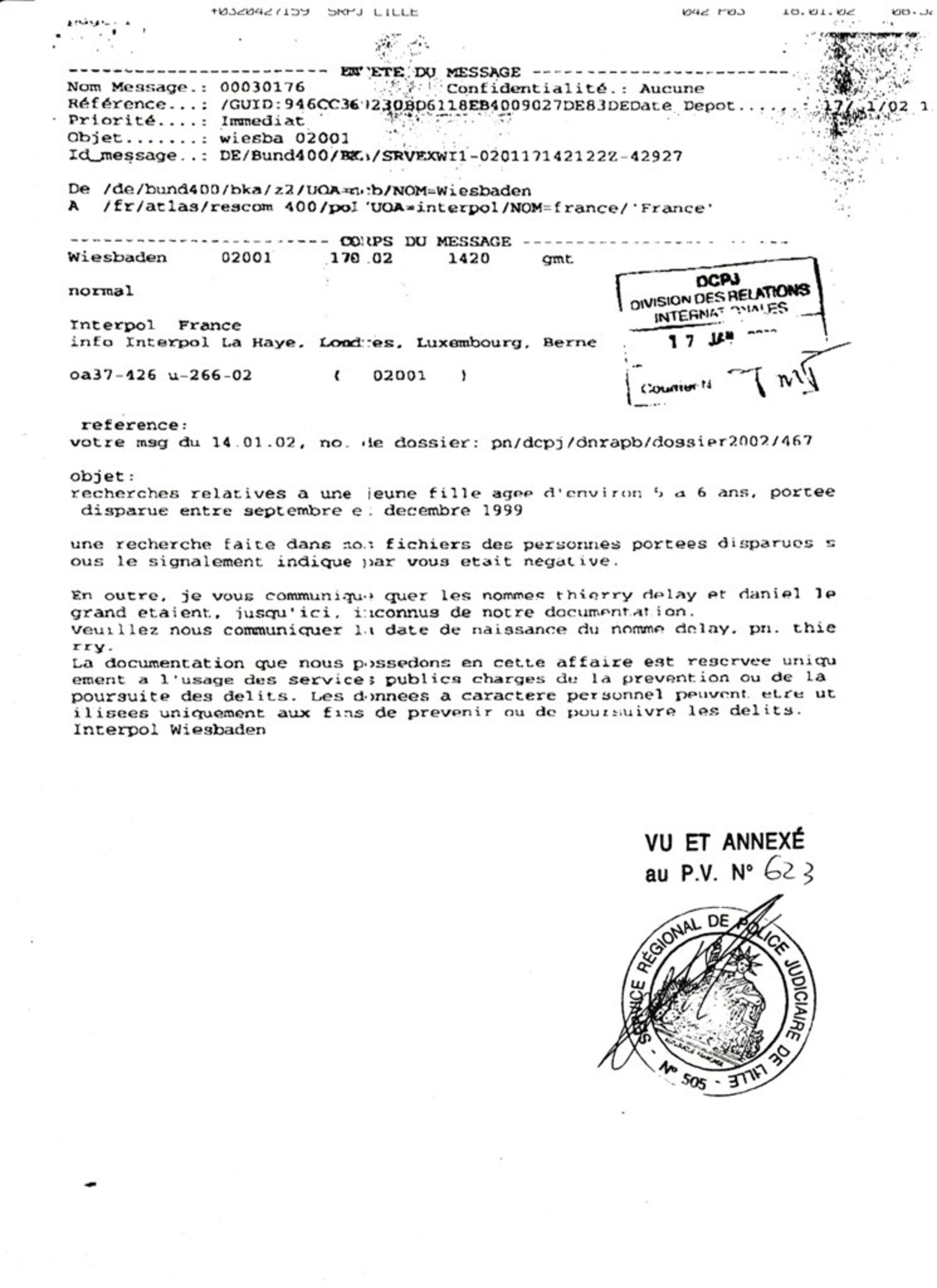 Document : Interpol dans le dossier Delay et autres, affaire dite d'Outreau